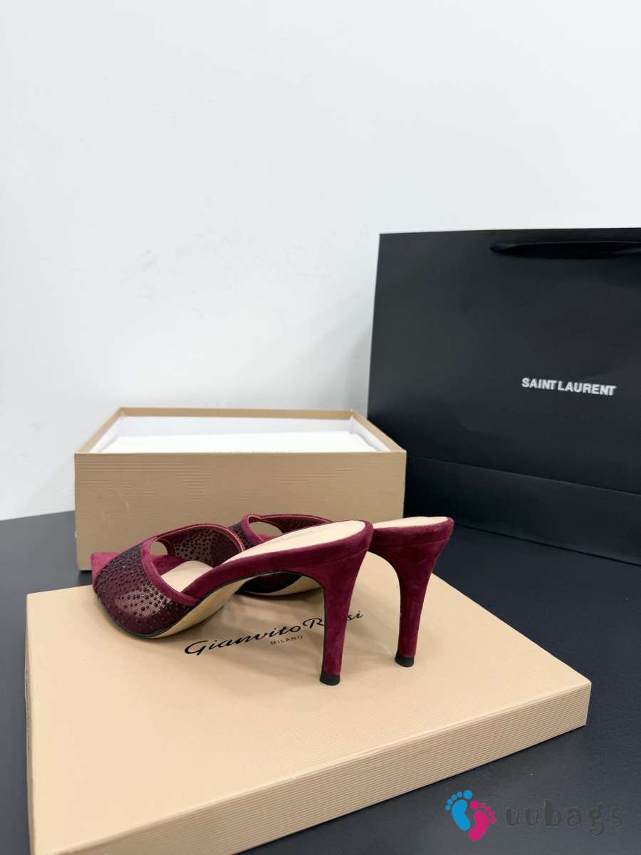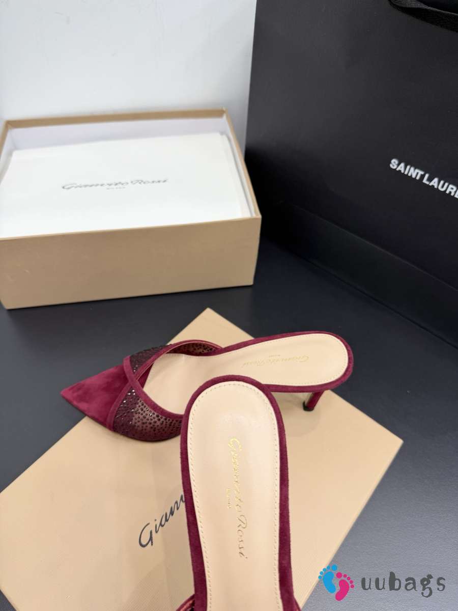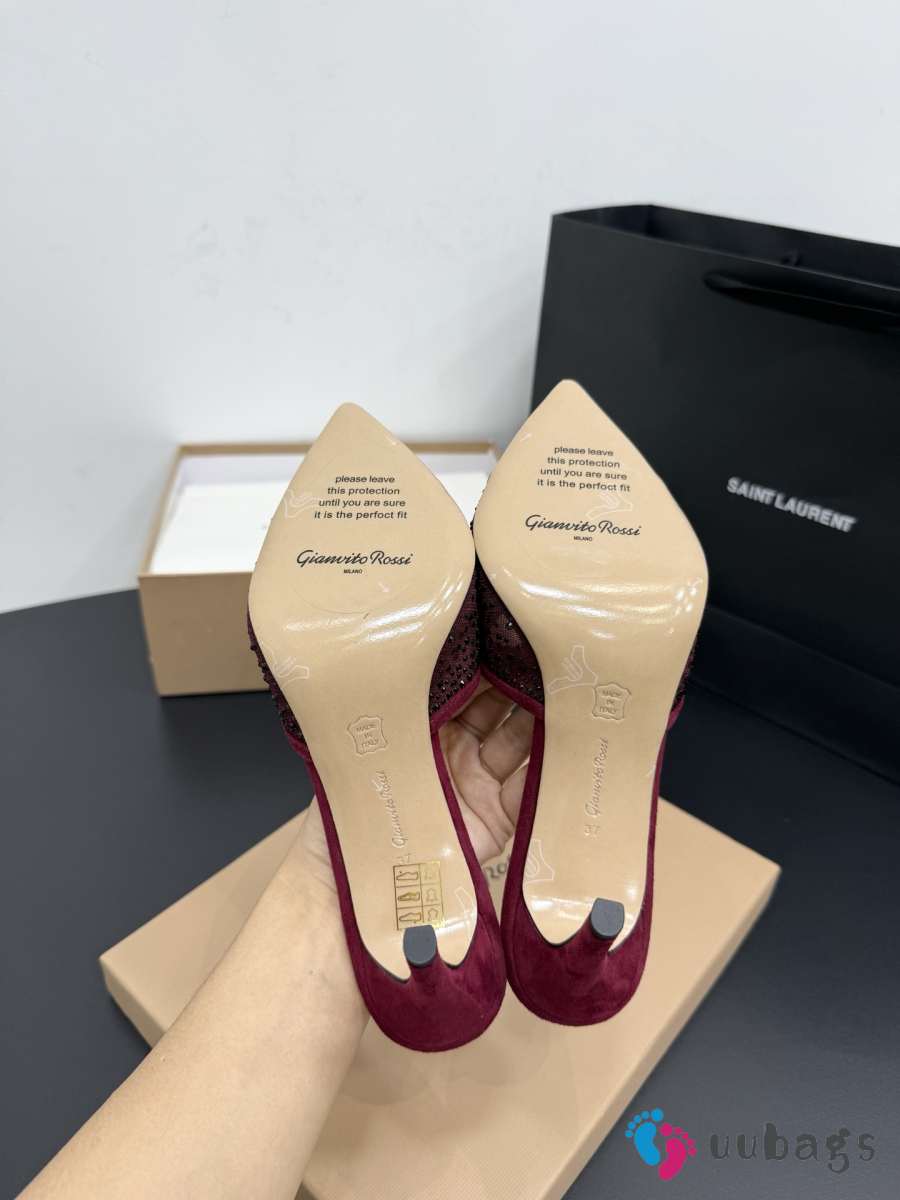 Uubags Gianvito Rossi Burgundy Crystal-Embellished Pointed-Toe Mule 8.5cm