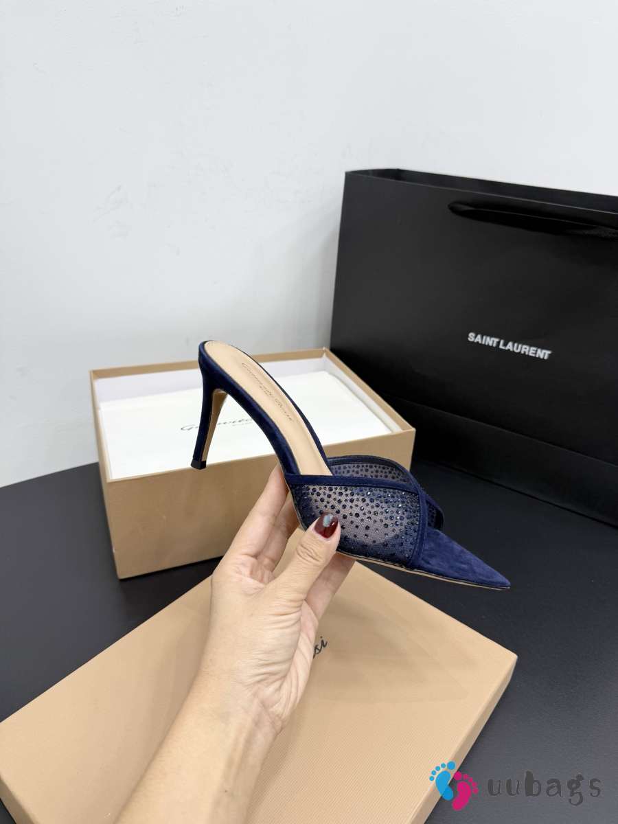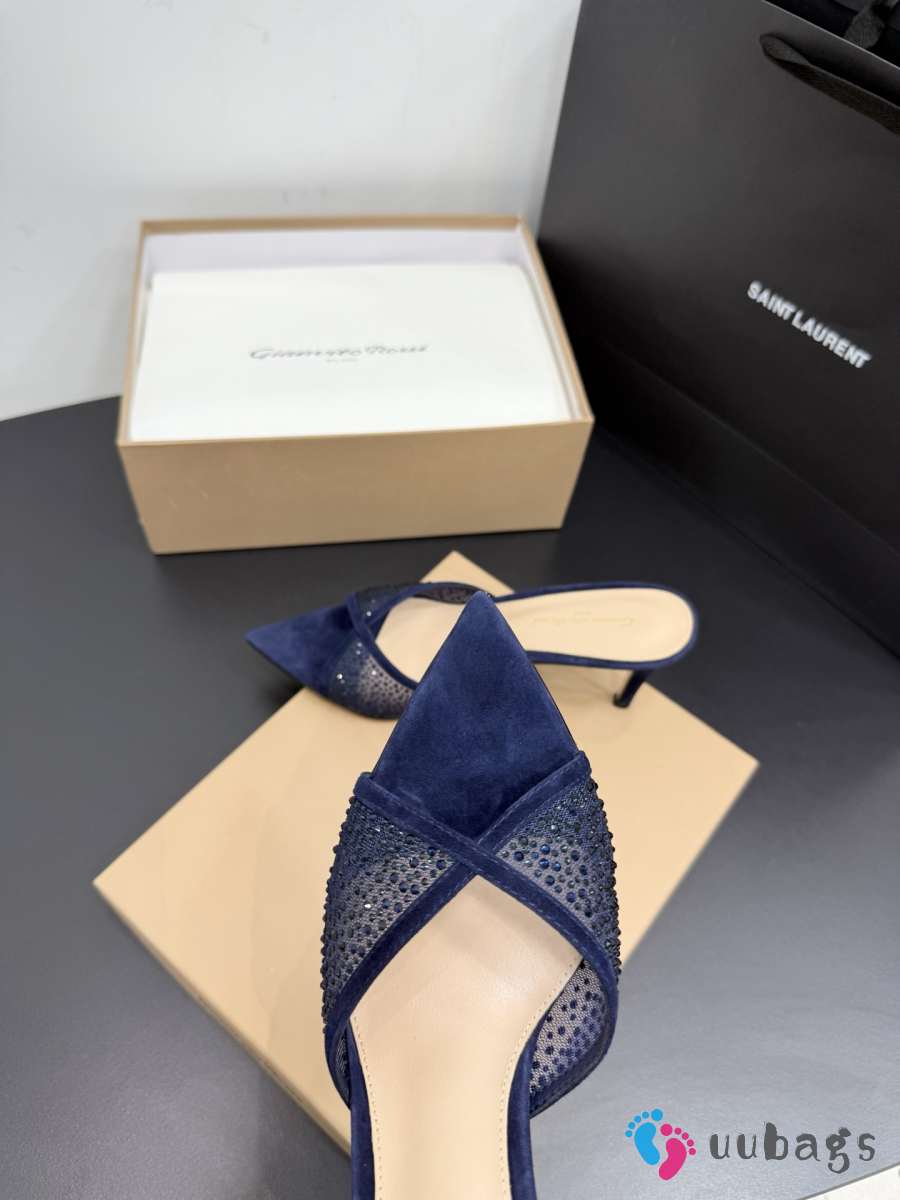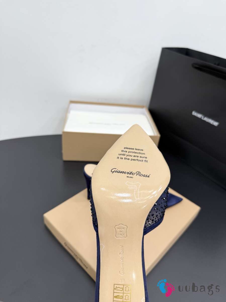 Uubags Gianvito Rossi Dark Blue Crystal-Embellished Pointed-Toe Mule 8.5cm