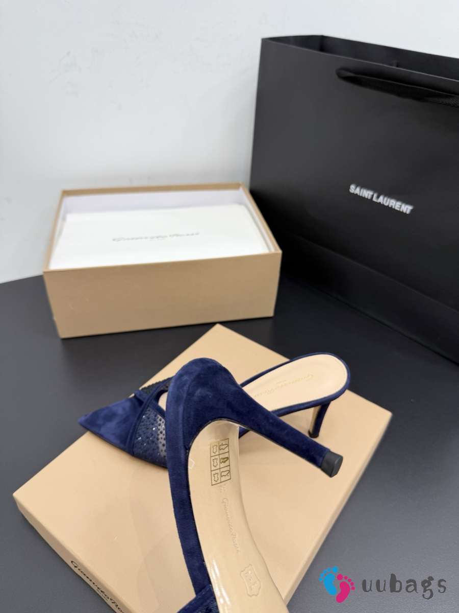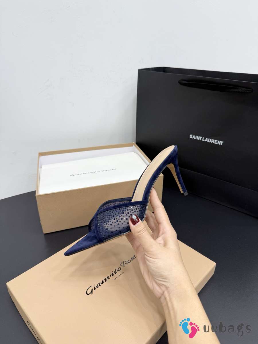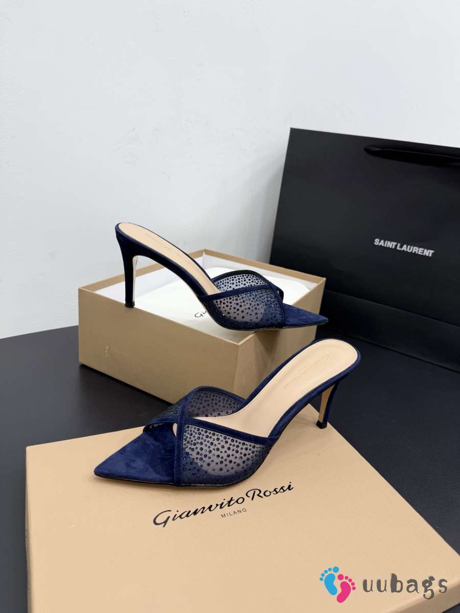 Uubags Gianvito Rossi Dark Blue Crystal-Embellished Pointed-Toe Mule 8.5cm