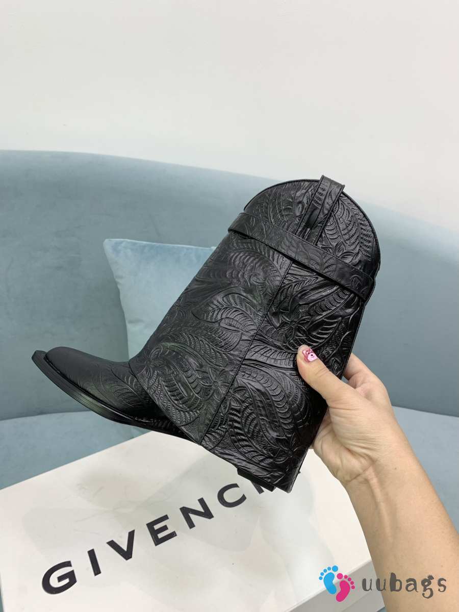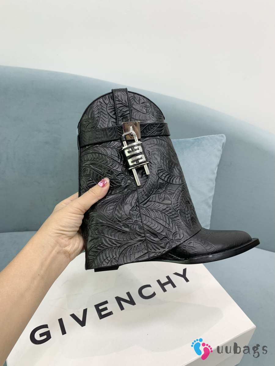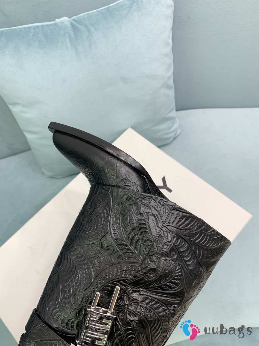 Uubags Givenchy Black Embossed Leather Cowboy Ankle Boots with 4G Padlock 6cm