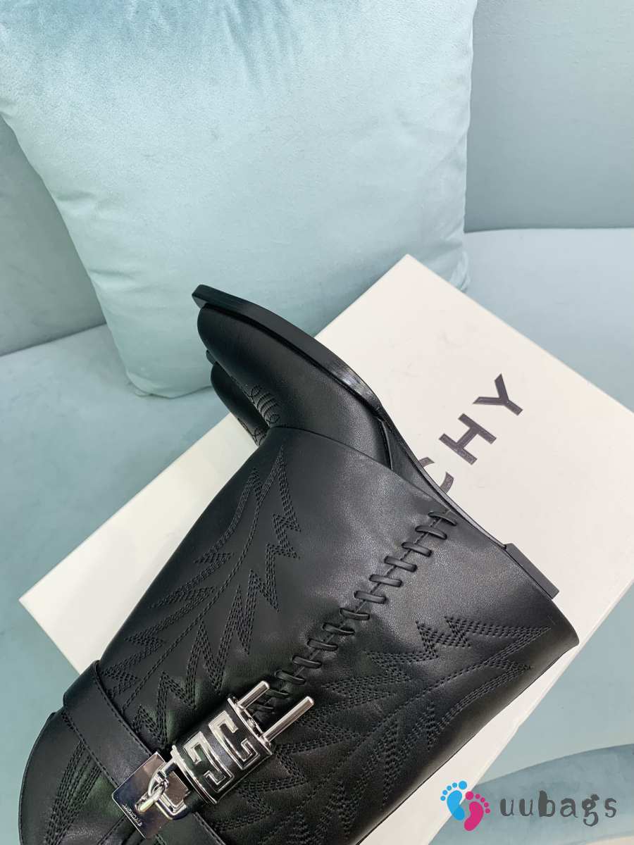 Uubags Givenchy Black Leather Cowboy Ankle Boots with 4G Padlock 6cm