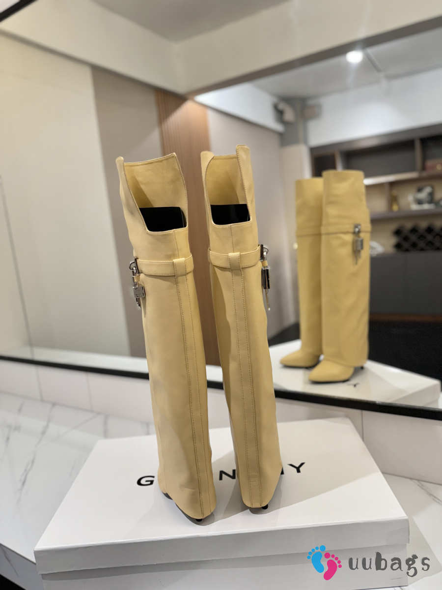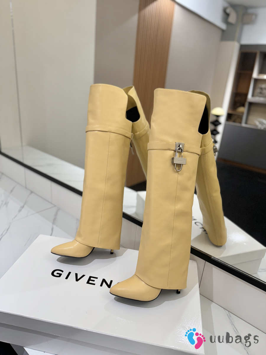 Uubags Givenchy Shark Lock Knee-High Boots in Beige Leather