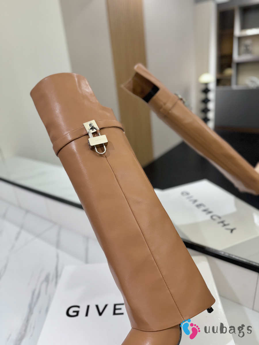 Uubags Givenchy Shark Lock Knee-High Boots in Brown Leather