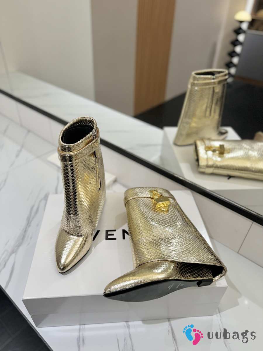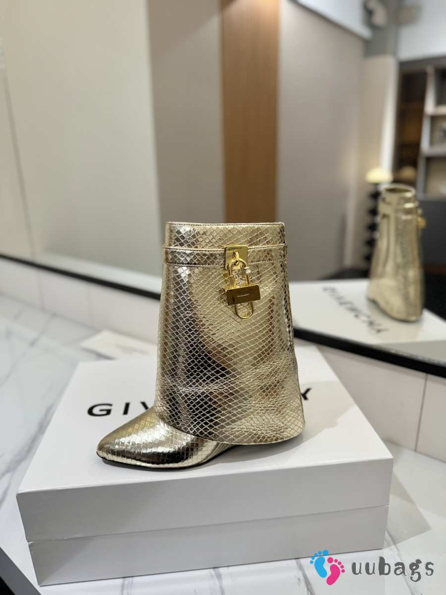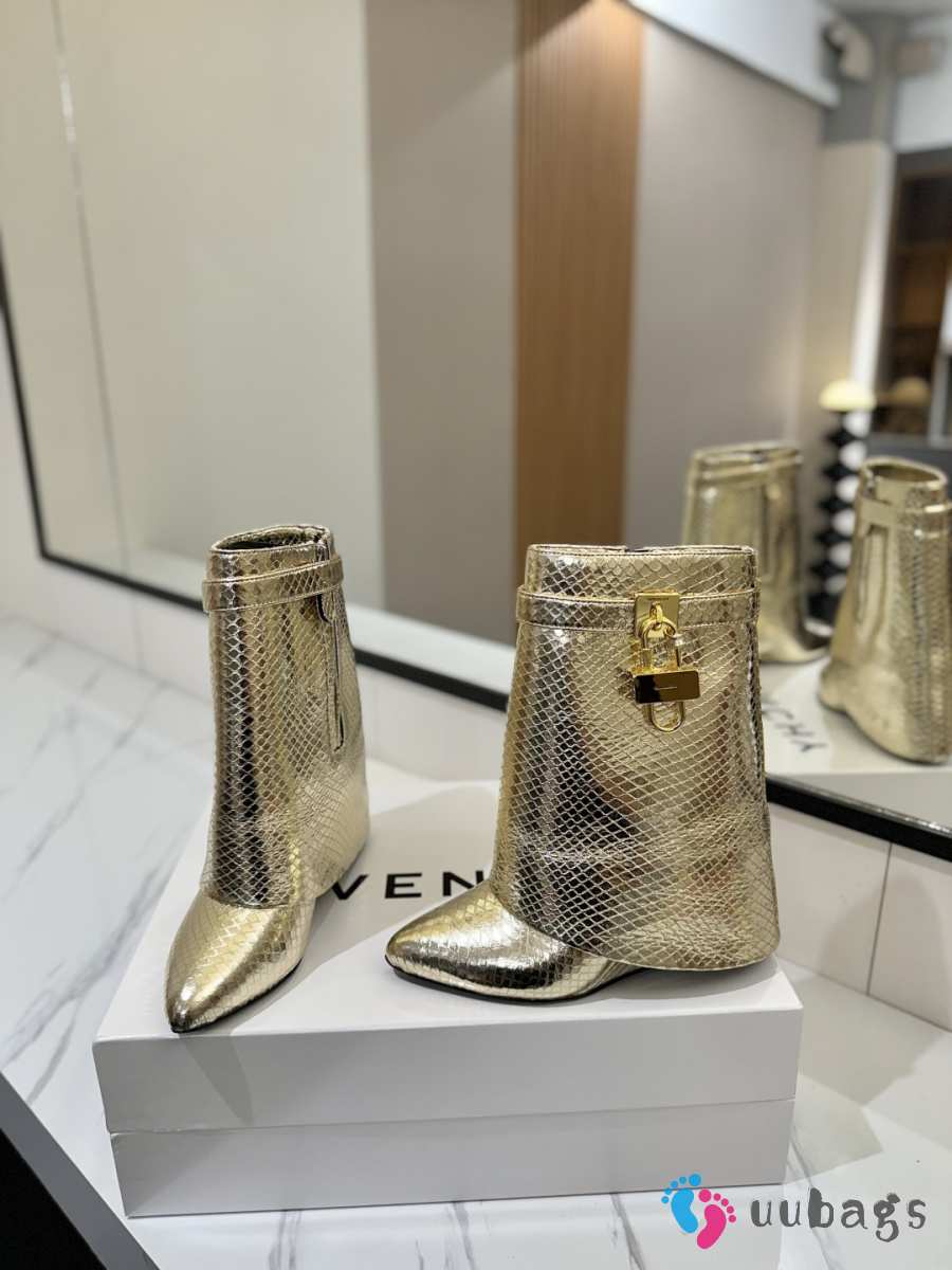 Uubags Givenchy Shark Lock Wedge Boots in Gold Metallic Snakeskin Embossed Leather