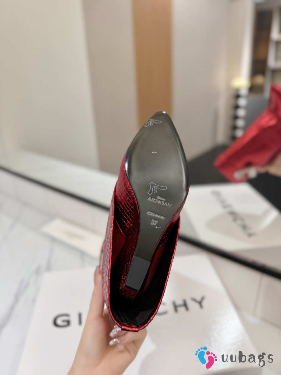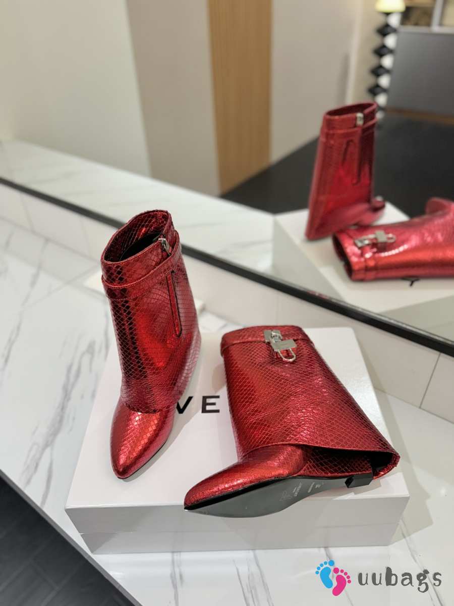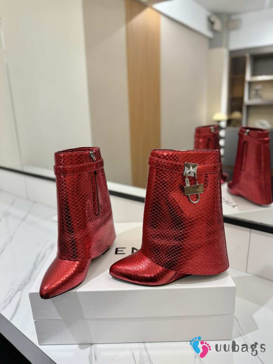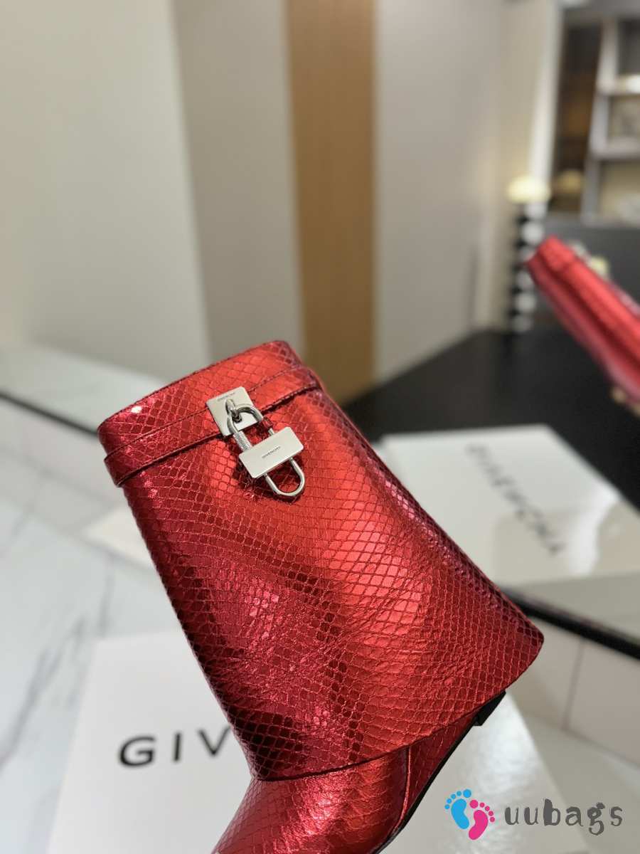 Uubags Givenchy Shark Lock Wedge Boots in Red Metallic Snakeskin Embossed Leather