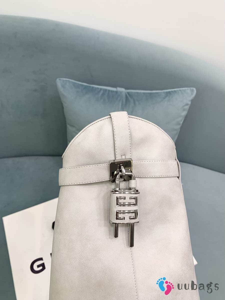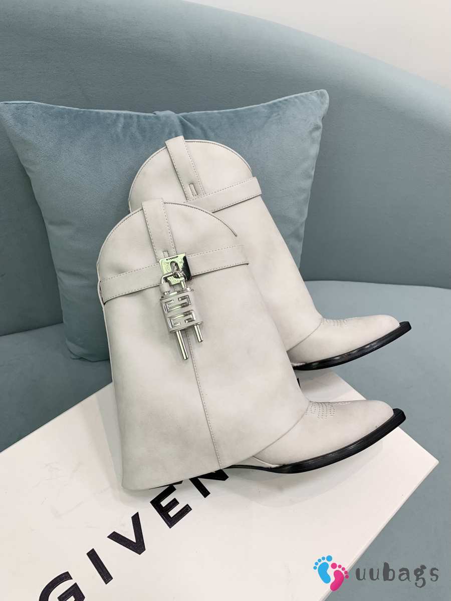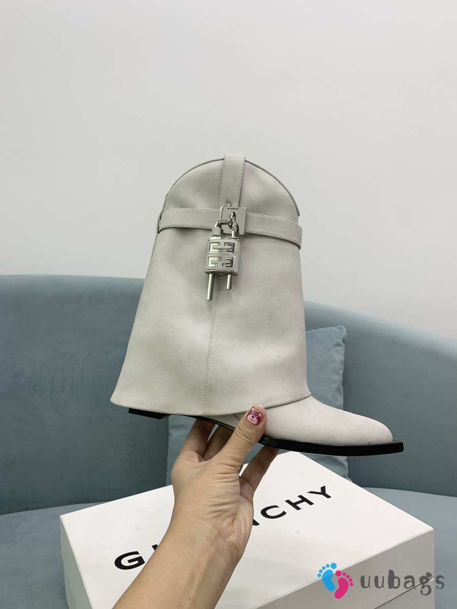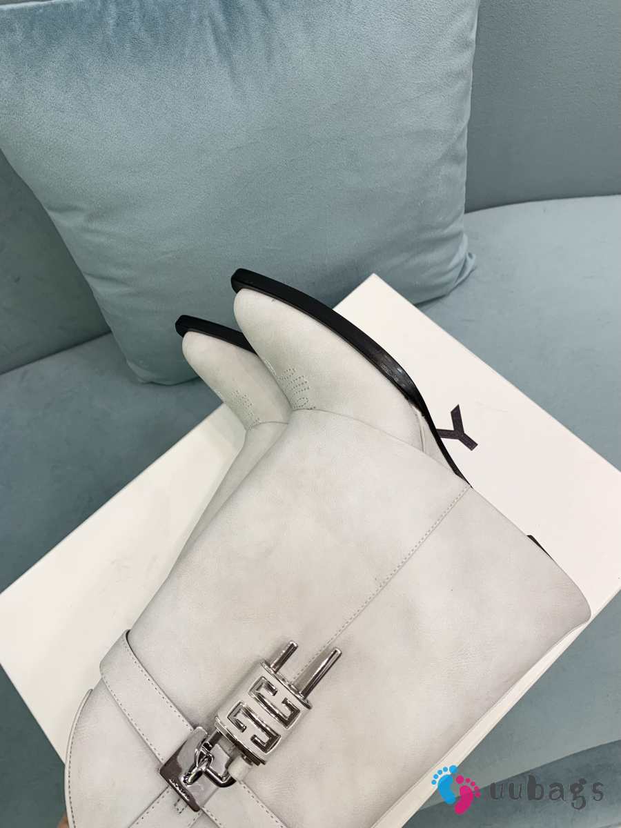 Uubags Givenchy White Suede Cowboy Ankle Boots with 4G Padlock 6cm