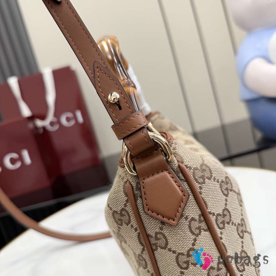 Uubags Gucci Diana small shoulder bag in beige and brown GG canvas 24x15x5cm