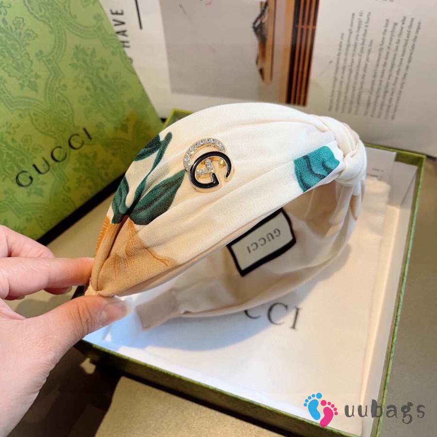 Uubags Gucci Floral Print Padded Headband with Metal Logo