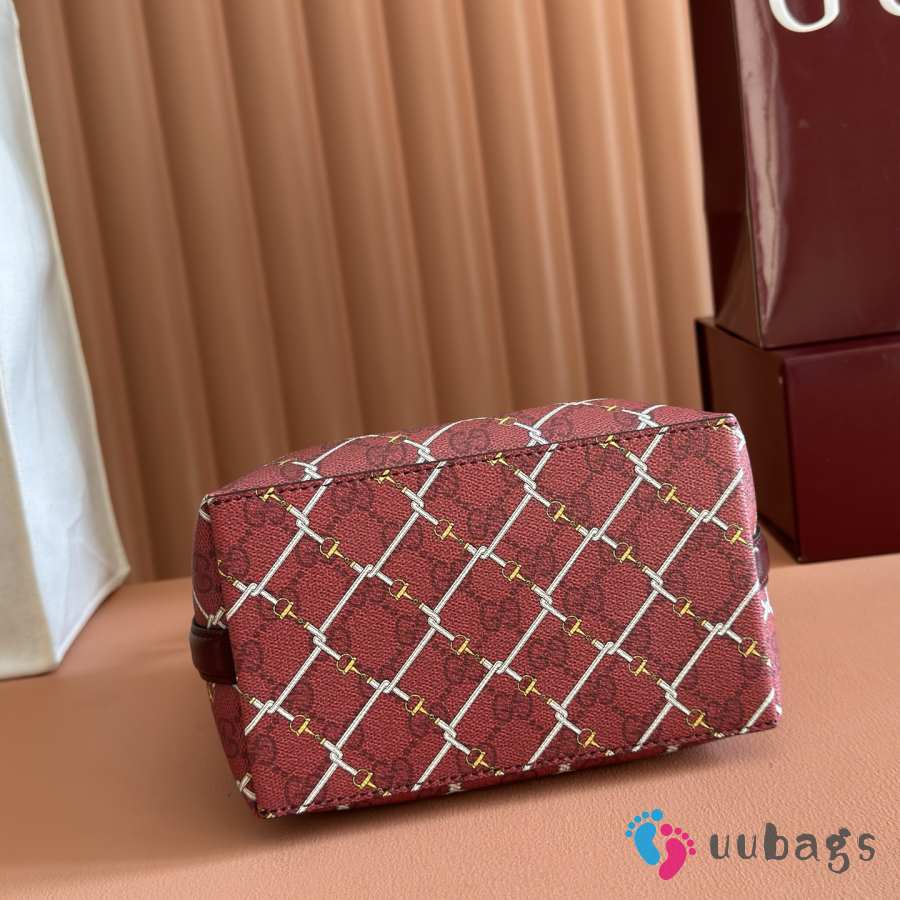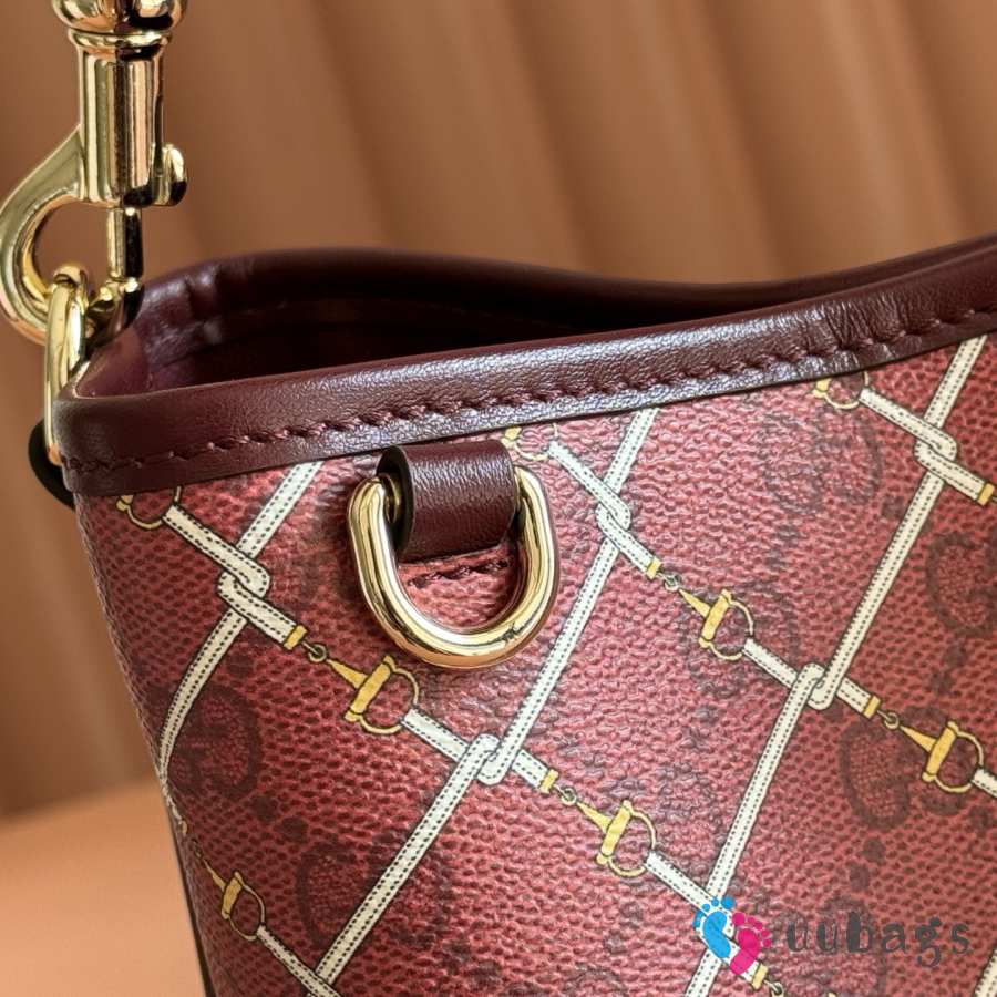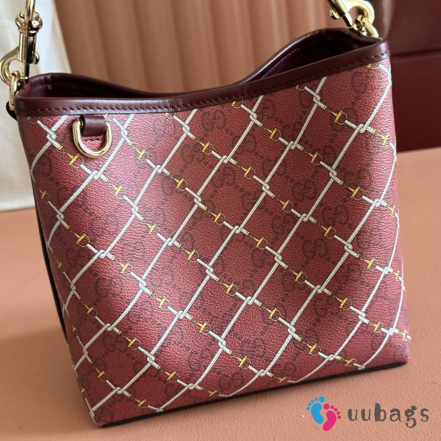 Uubags Gucci GG Emblem small bucket bag in red and pink GG fabric 19x18x11cm