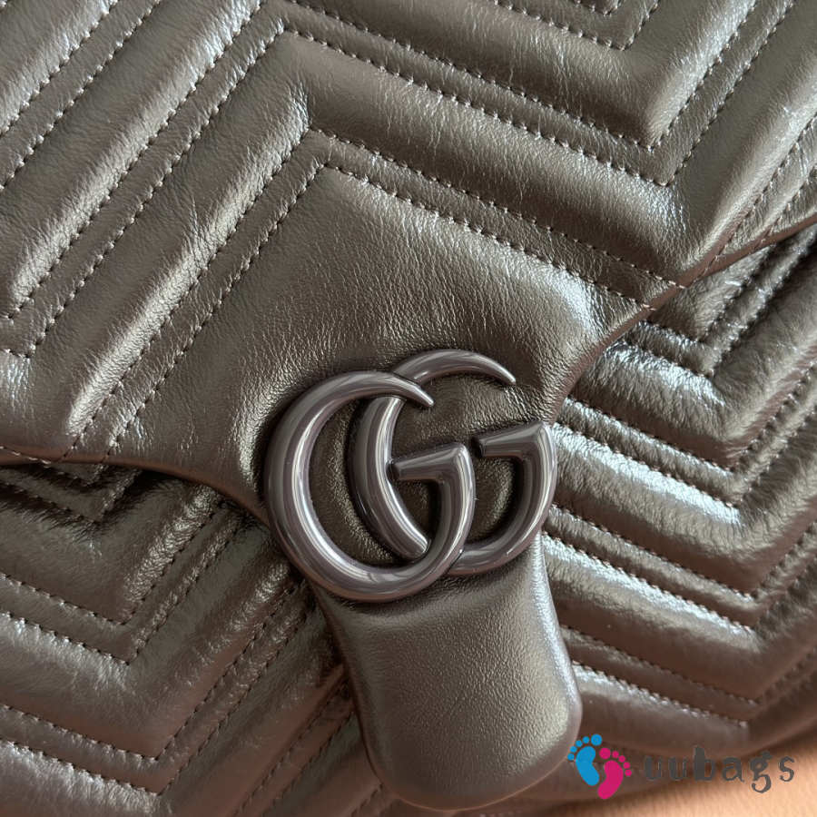 Uubags Gucci GG Marmont large shoulder bag in dark brown leather 37.5x21x9cm