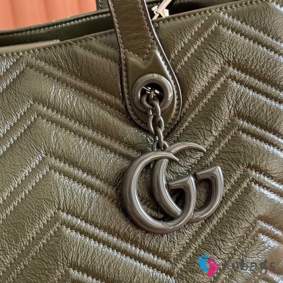 Uubags Gucci GG Marmont medium forest green soft lightweight matelassé chevron nappa leather tote bag 30x23x18cm