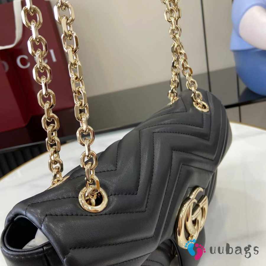 Uubags Gucci GG marmont mini shoulder bag in black leather 16.5x9.5x4.5cm