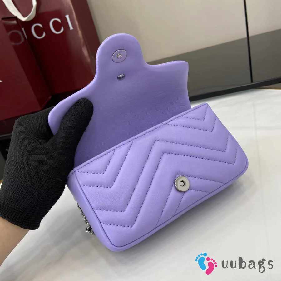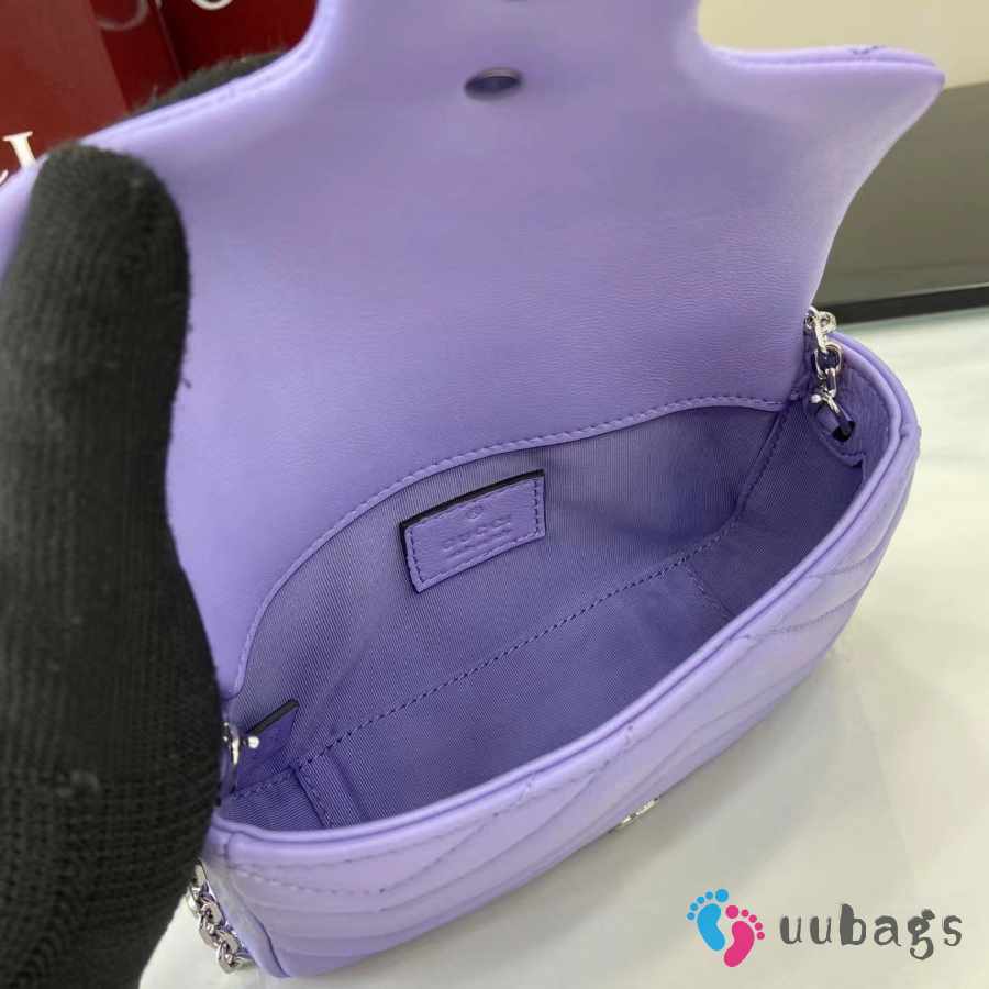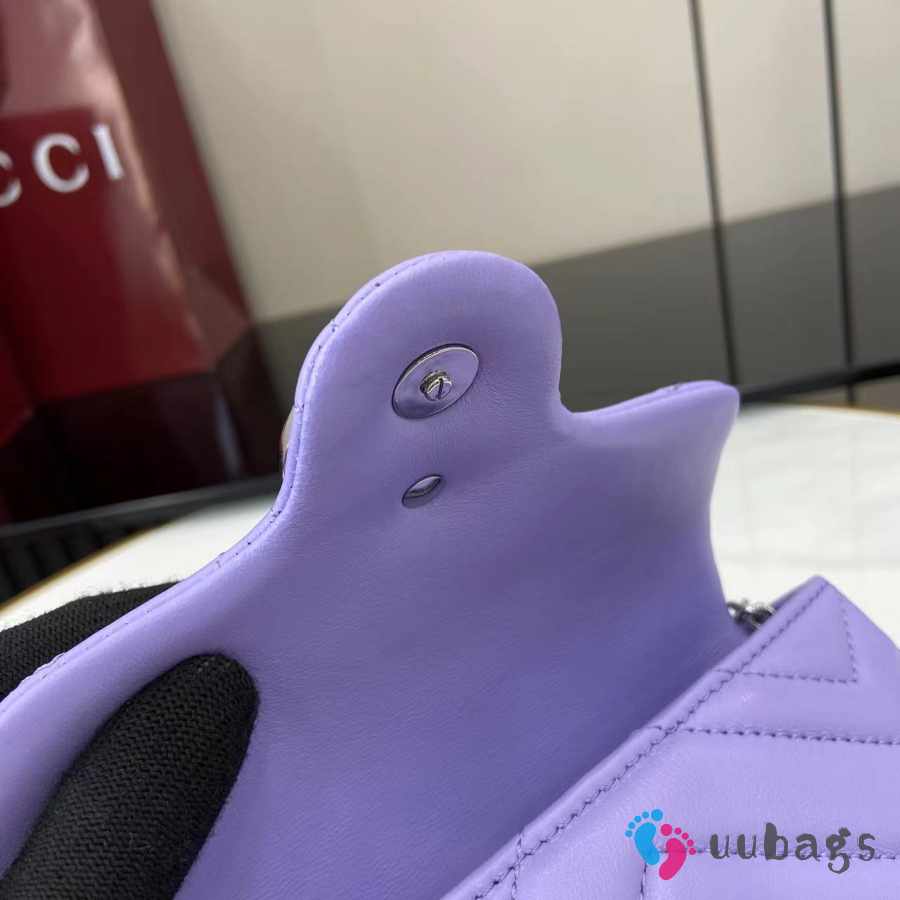 Uubags Gucci GG Marmont Mini Shoulder Bag In Purple Lambskin Leather 16.5x9.5x4.5cm
