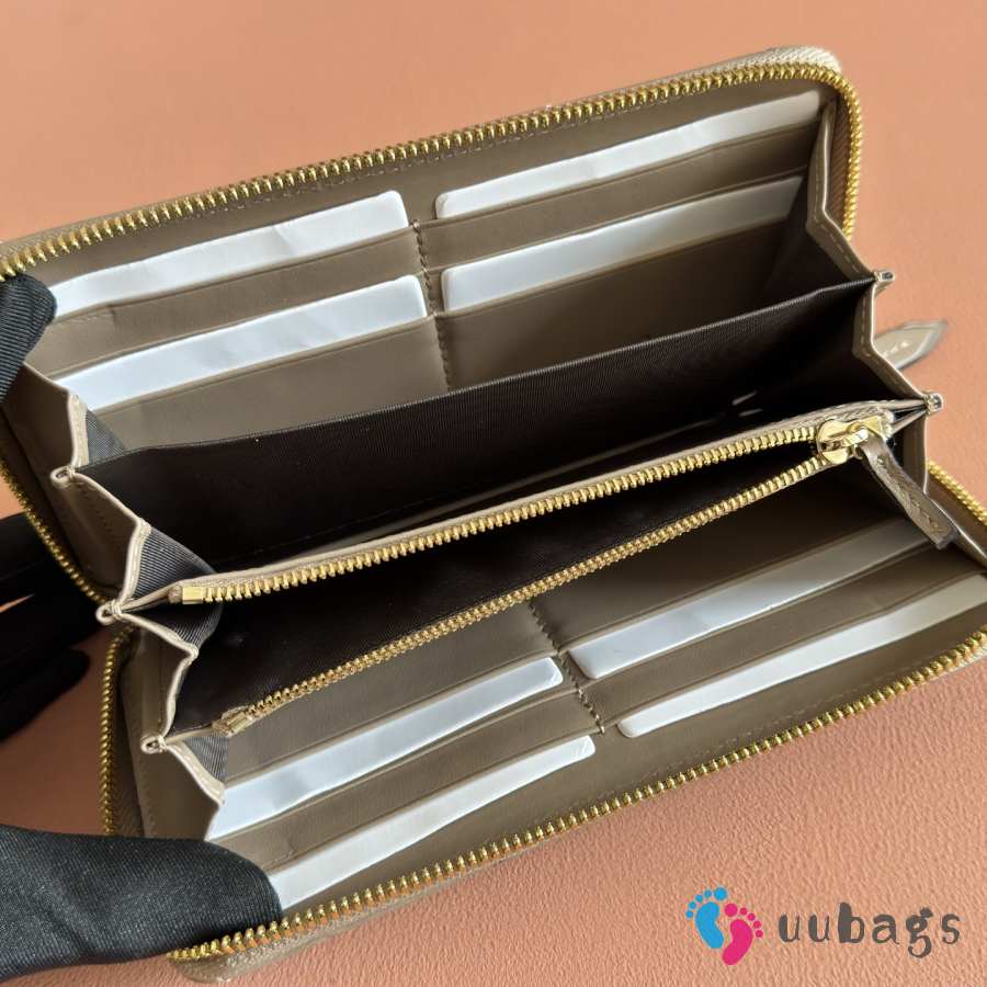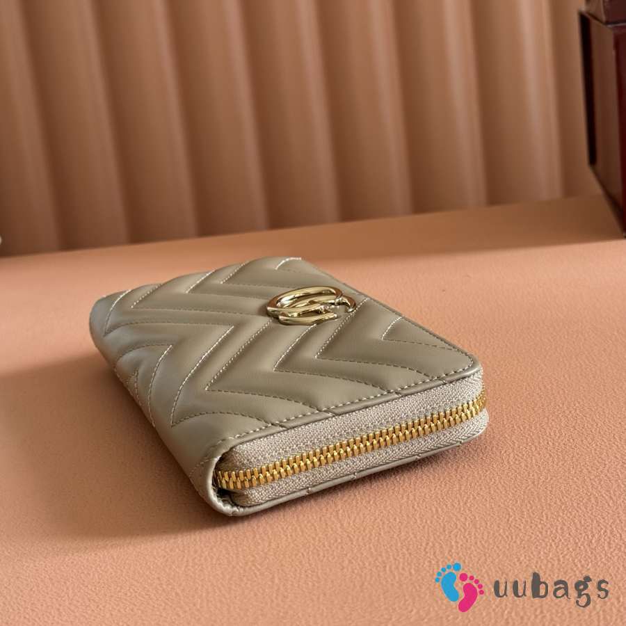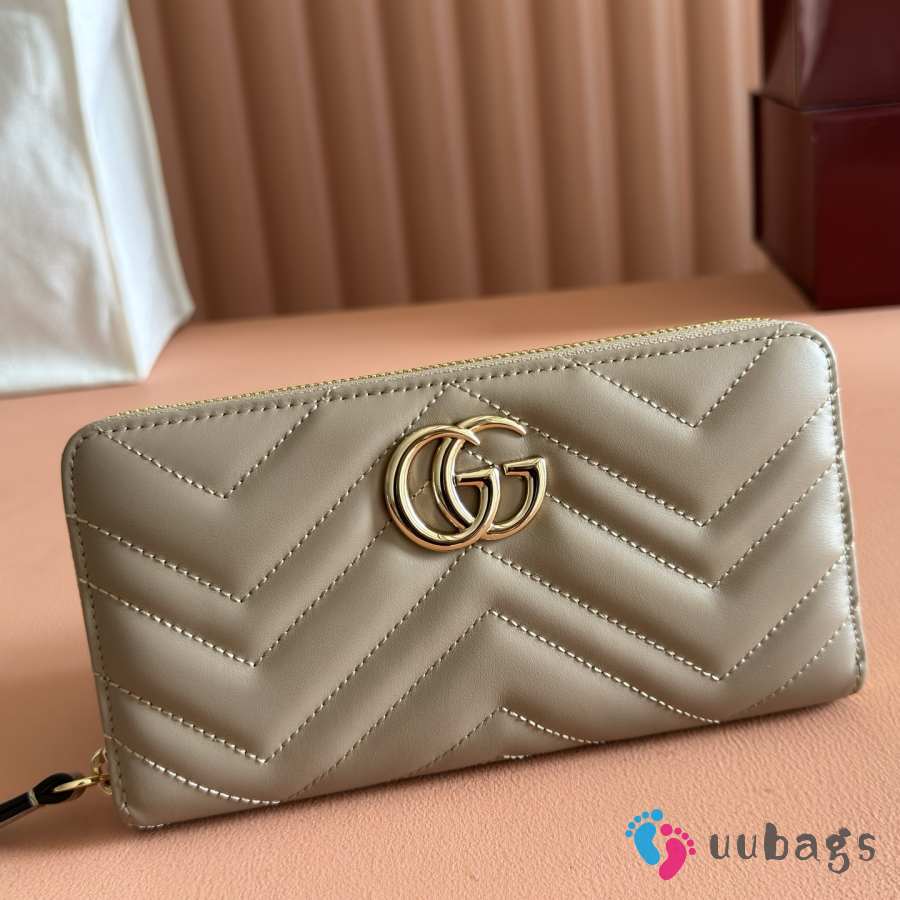 Uubags Gucci GG Marmont zip around wallet taupe matelassé chevron leather 19x10.5x2cm