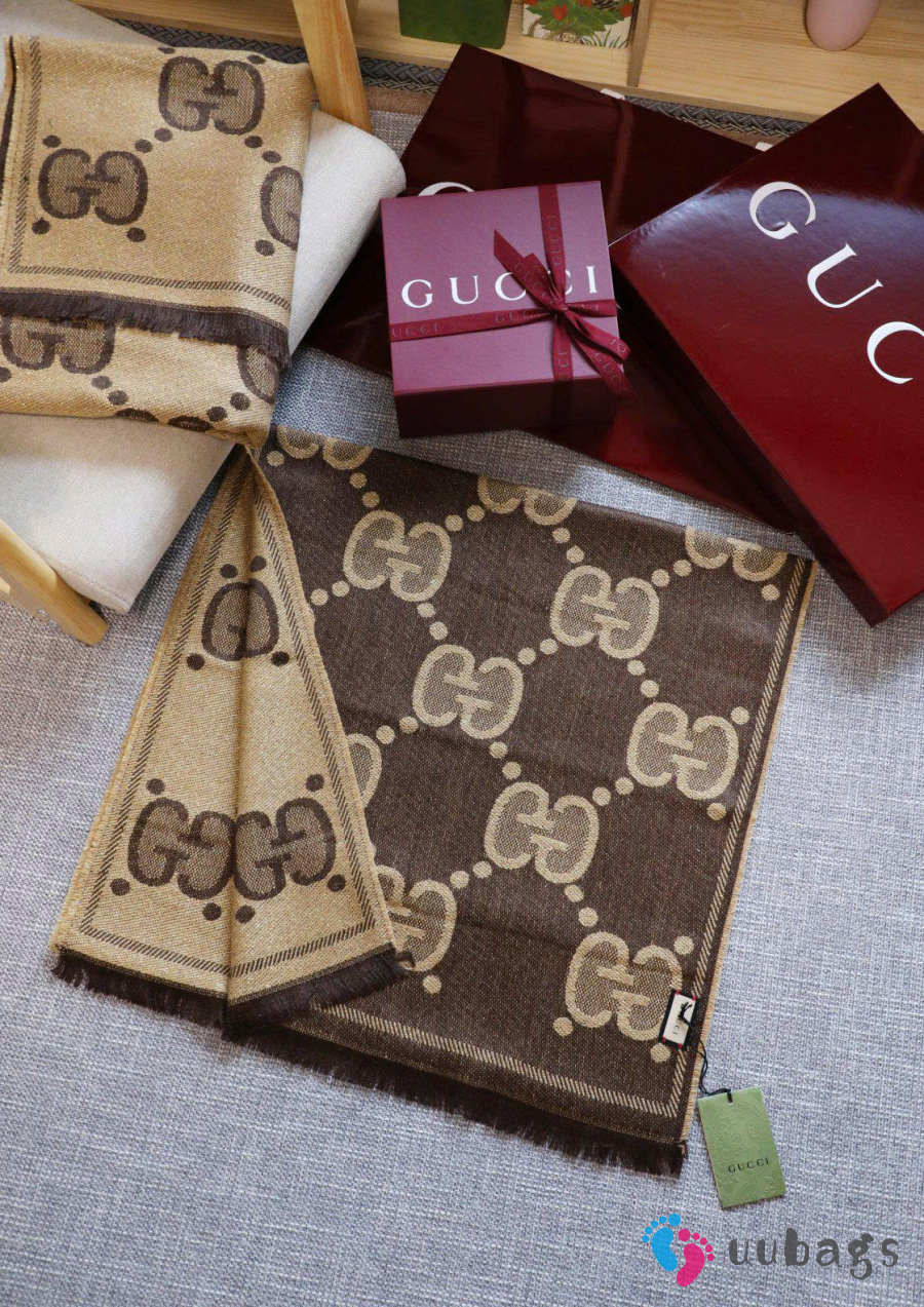Uubags Gucci GG Wool Jacquard Scarf Beige And Brown 45x195cm.