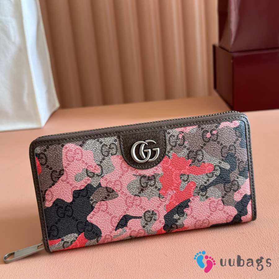 Uubags Gucci GG zip-around wallet pink and red GG fabric 19x10.5x2.5cm