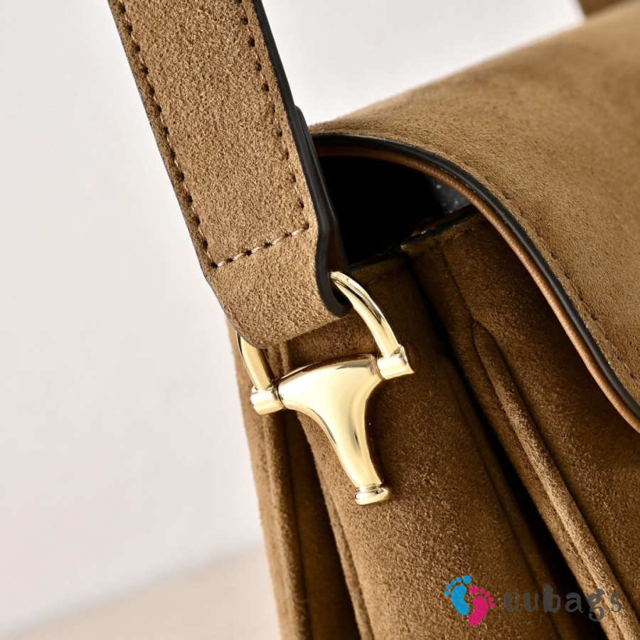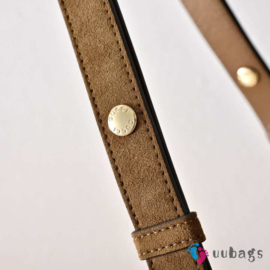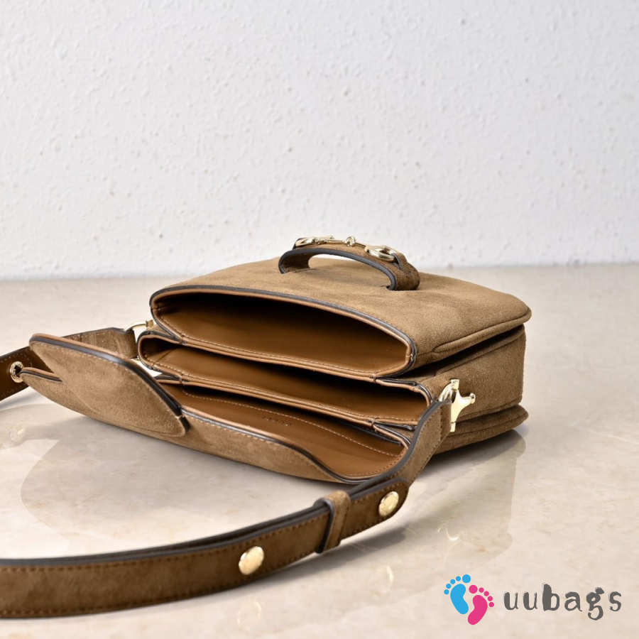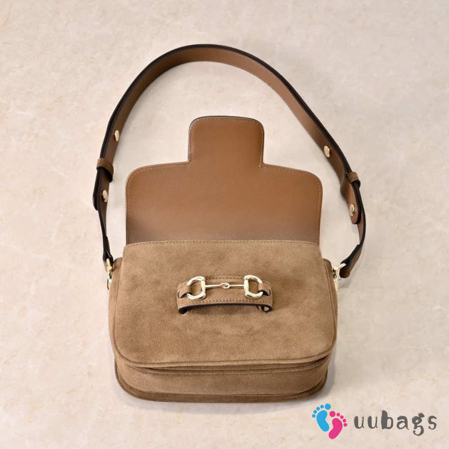 Uubags Gucci Horsebit 1955 Aura mini shoulder bag in brown suede leather 19.5x15x9cm