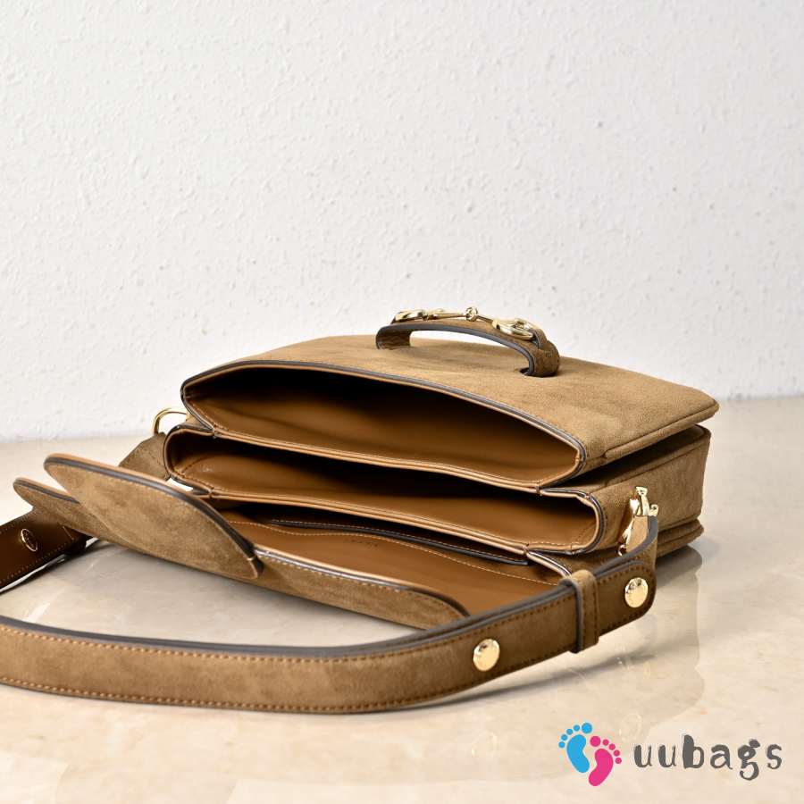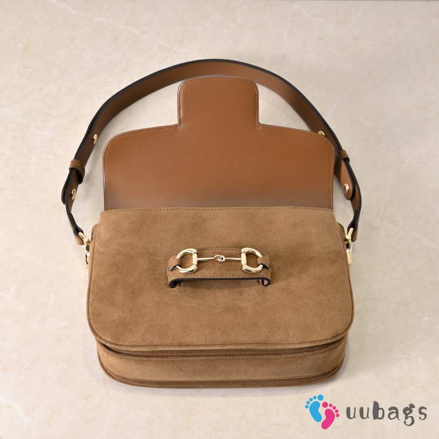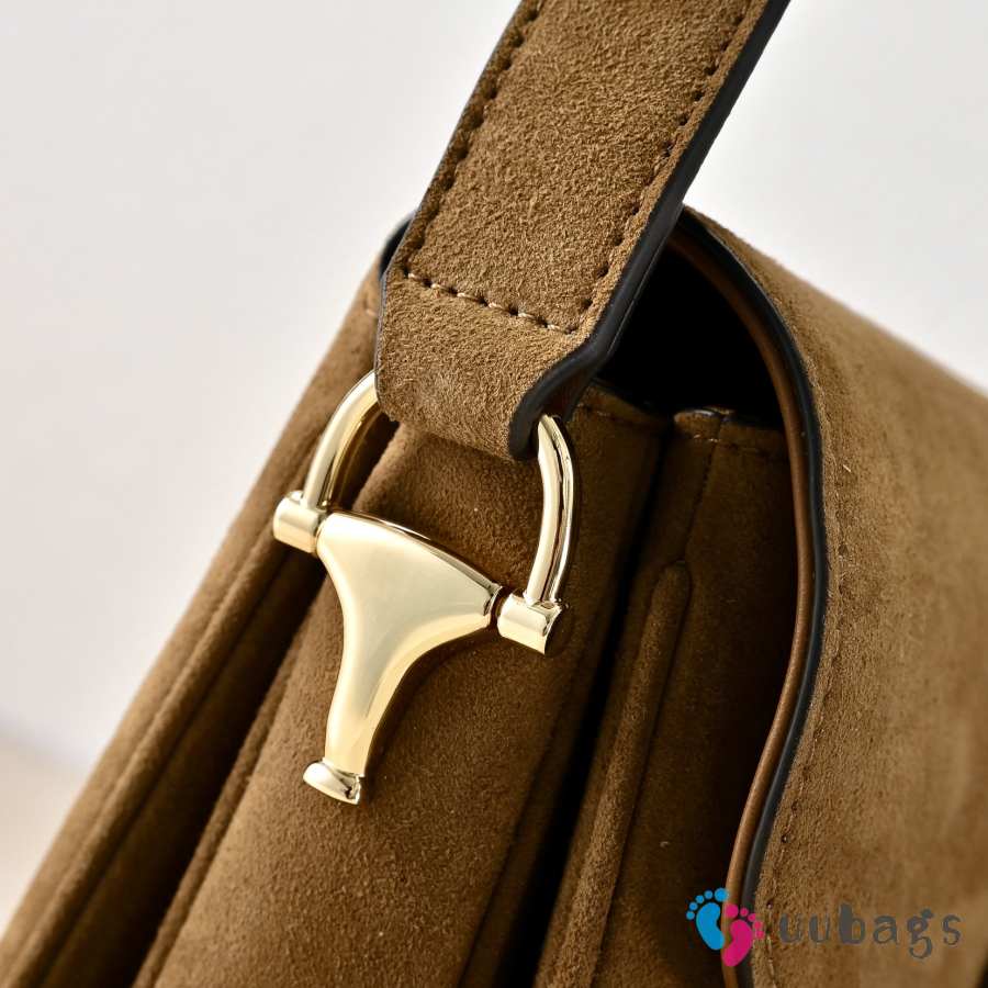 Uubags Gucci Horsebit 1955 Aura small shoulder bag in brown suede leather 26x17.5x10cm