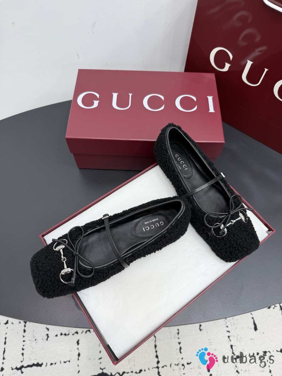 Uubags Gucci Horsebit ballet flat black merino wool