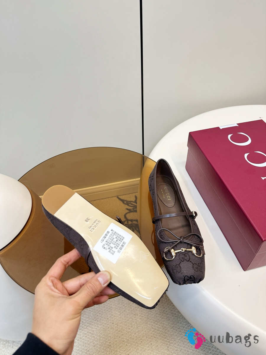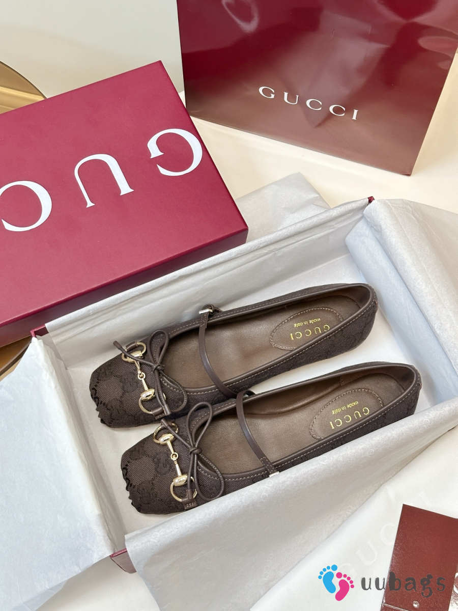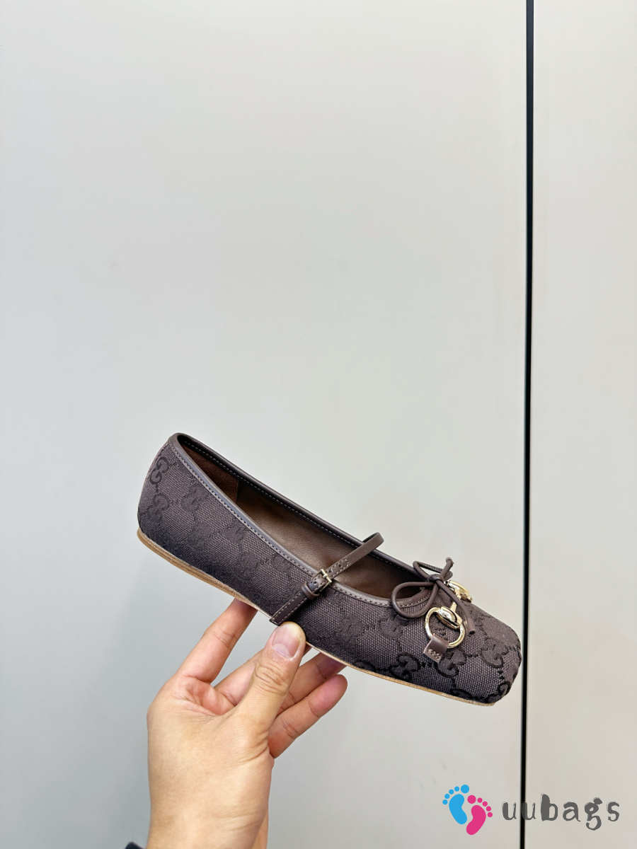 Uubags Gucci Horsebit ballet flat in dark brown GG canvas
