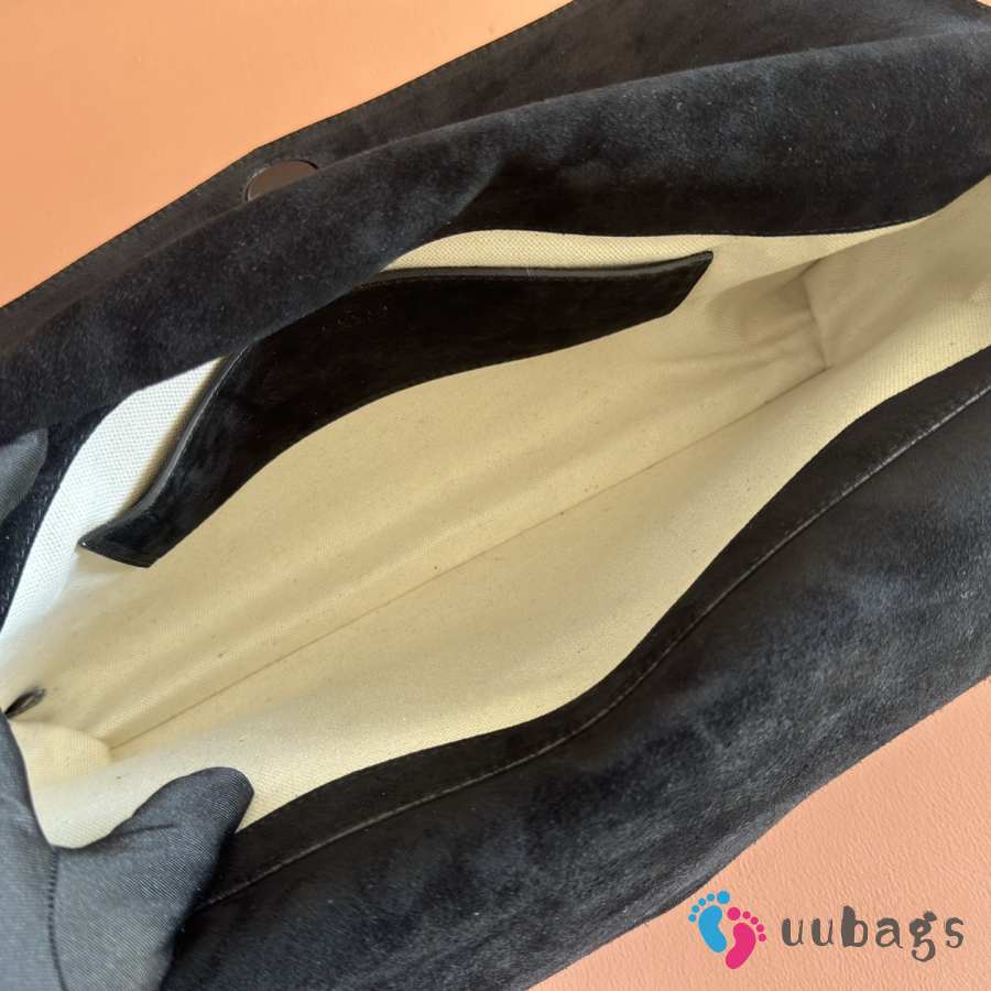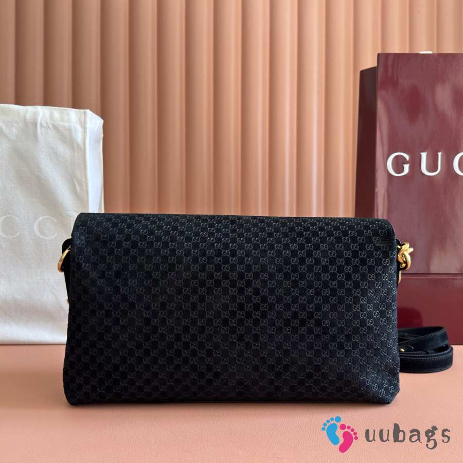 Uubags Gucci large shoulder bag with chain black GG suede 36x19.5x9.5cm