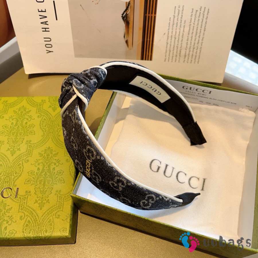 Uubags Gucci Logo Jacquard Black Denim Headband
