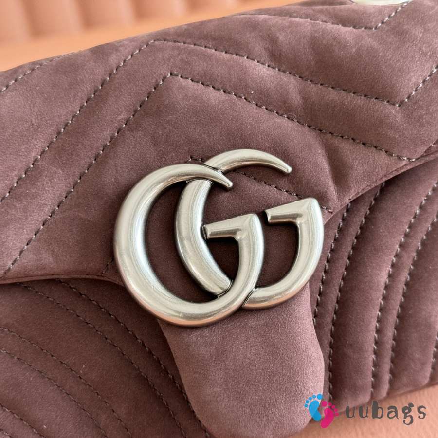 Uubags Gucci Marmont small shoulder bag in dark brown suede leather 22x15x6cm