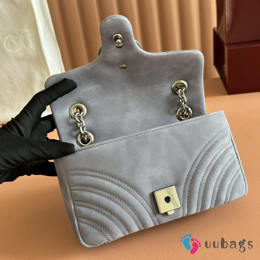 Uubags Gucci Marmont small shoulder bag in dusty blue suede leather 22x15x6cm