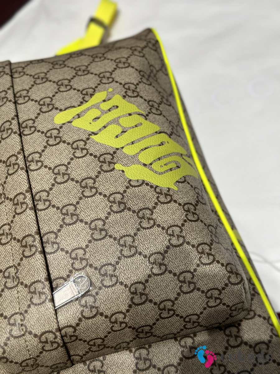 Uubags Gucci medium backpack with print dark green cotton linen lining 36.5x41x18cm