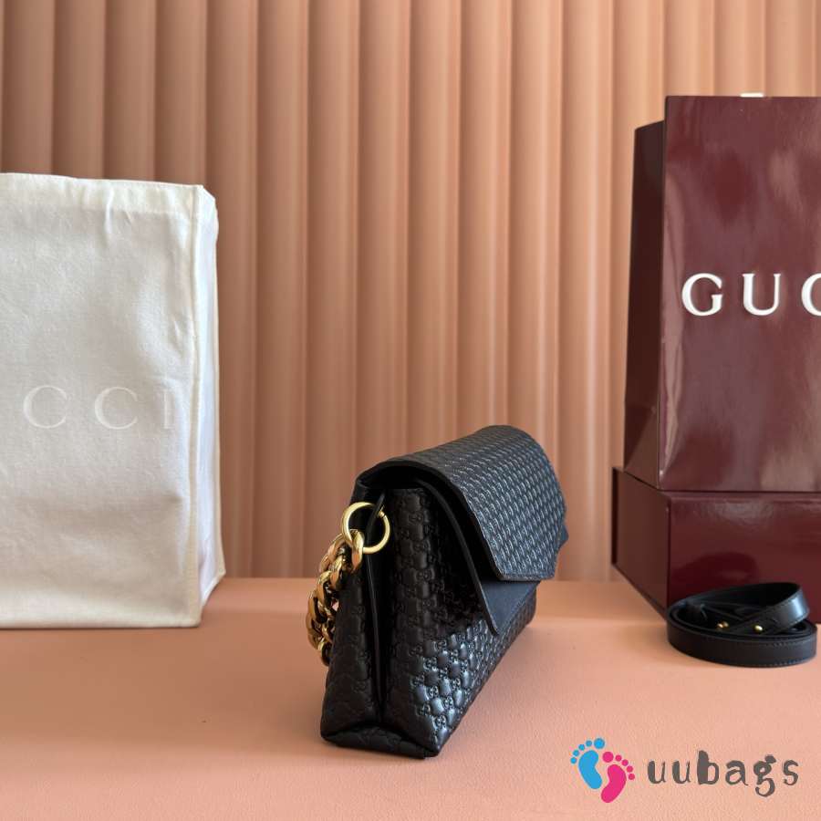 Uubags Gucci medium shoulder bag with chain black GG leather 28x16x7cm