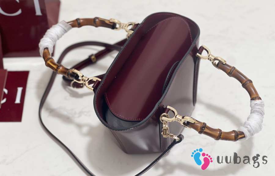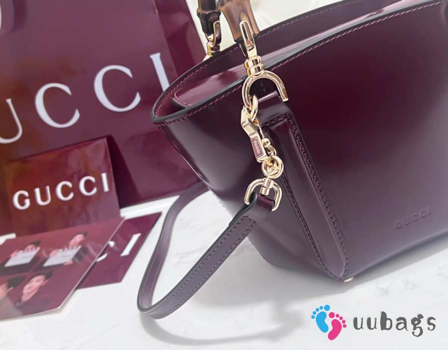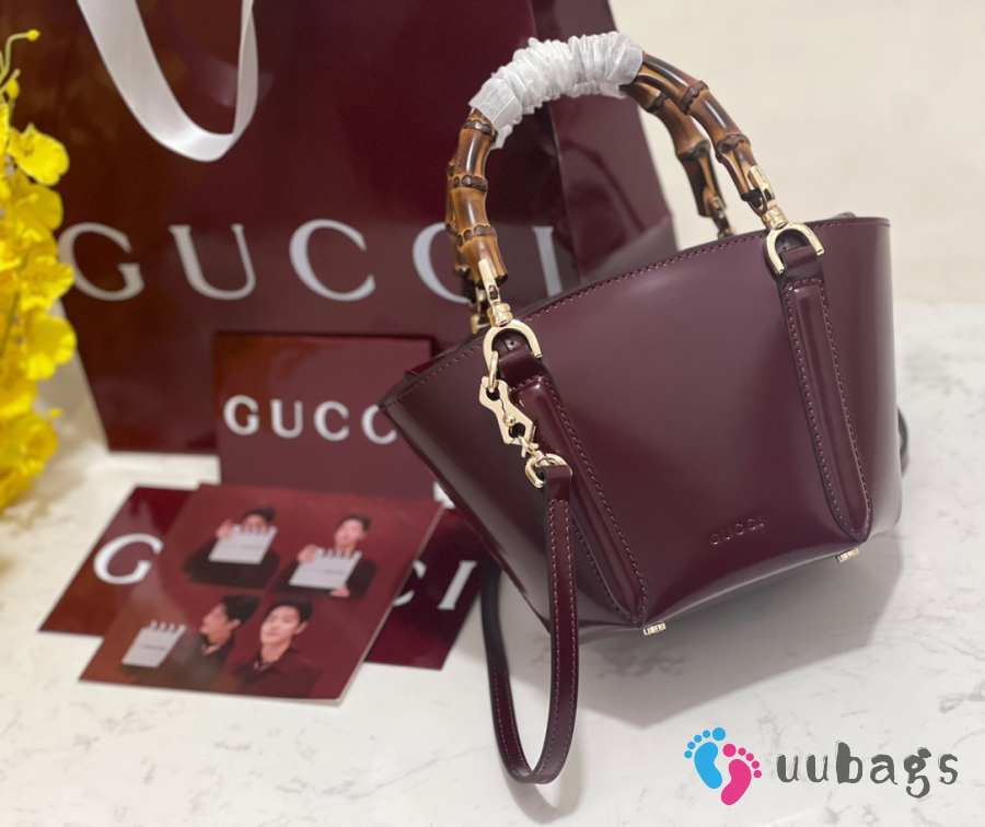 Uubags Gucci Mini Bamboo Top Handle Tote Bag In Burgundy 27x14x11.5cm