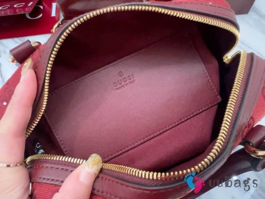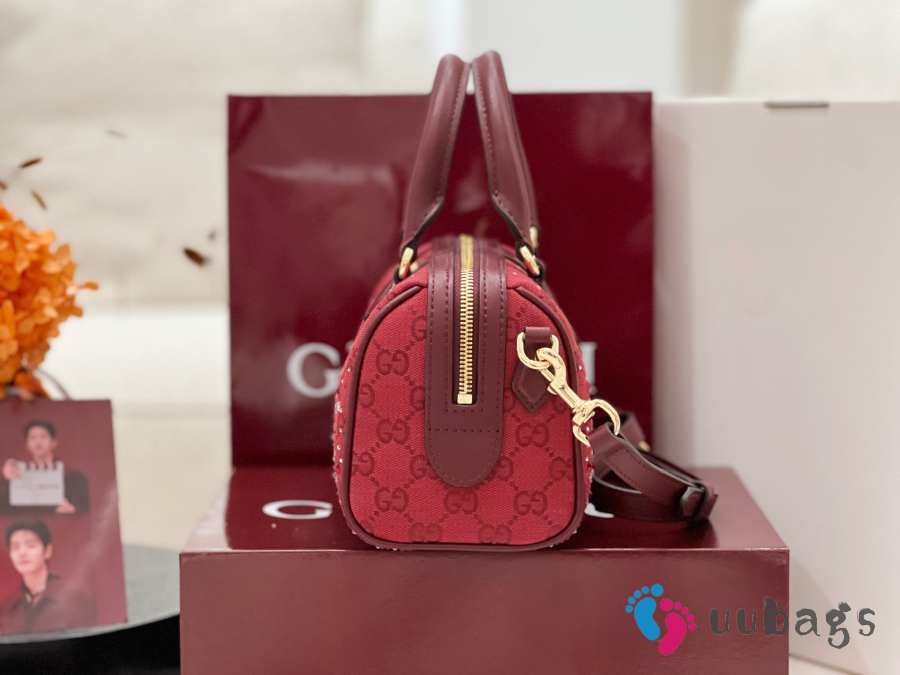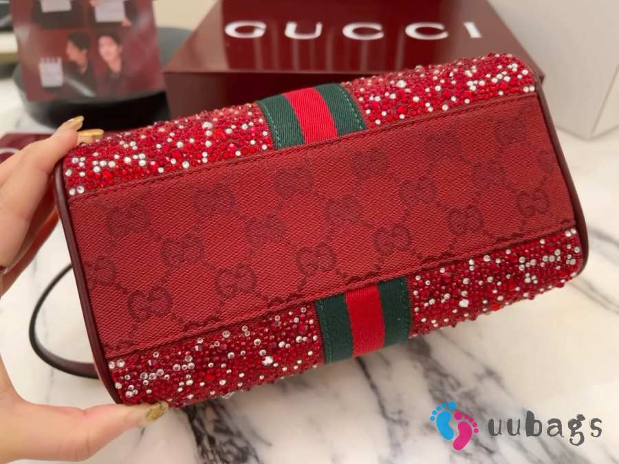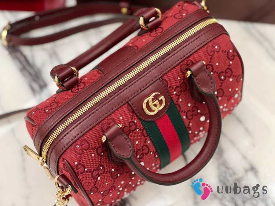 Uubags Gucci Ophidia crystals small boston bag in Rosso Ancora red GG canvas with gradient-effect crystals 21x13x11cm