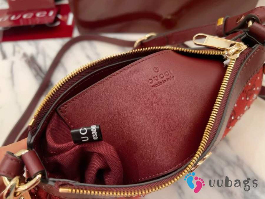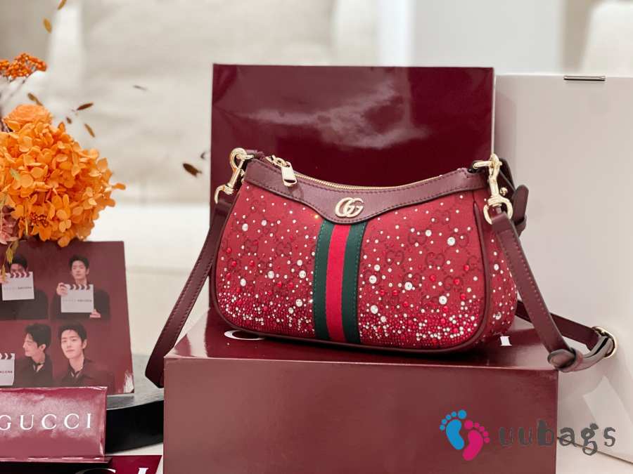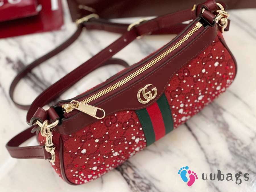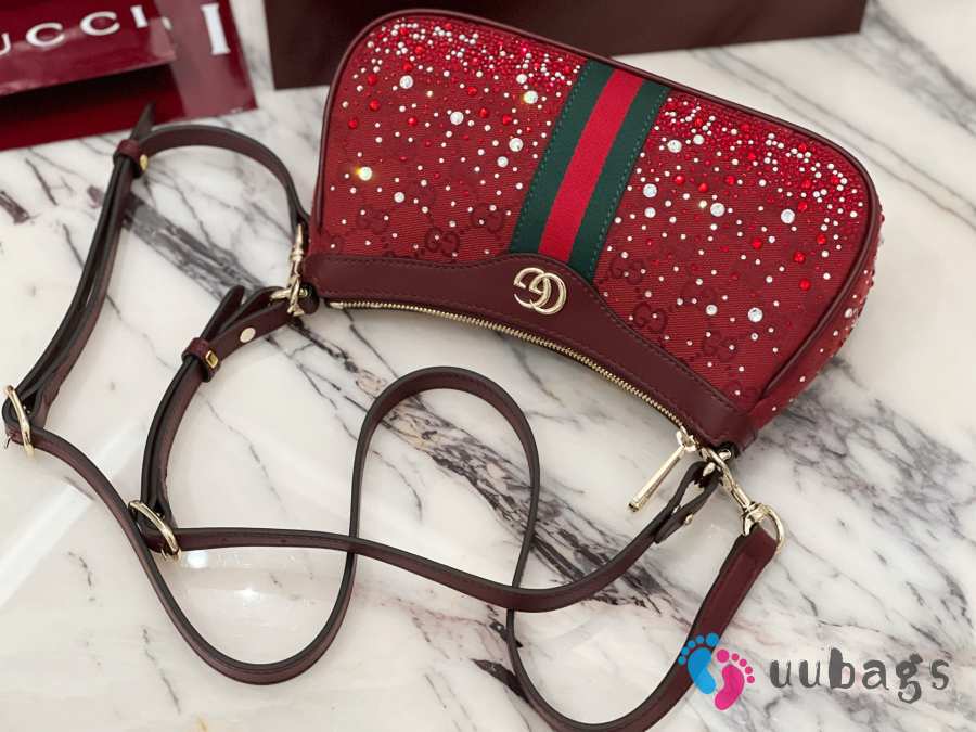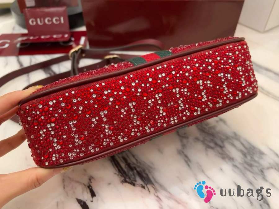 Uubags Gucci Ophidia crystals small shoulder bag in Rosso Ancora red GG canvas 26x15x6.5cm
