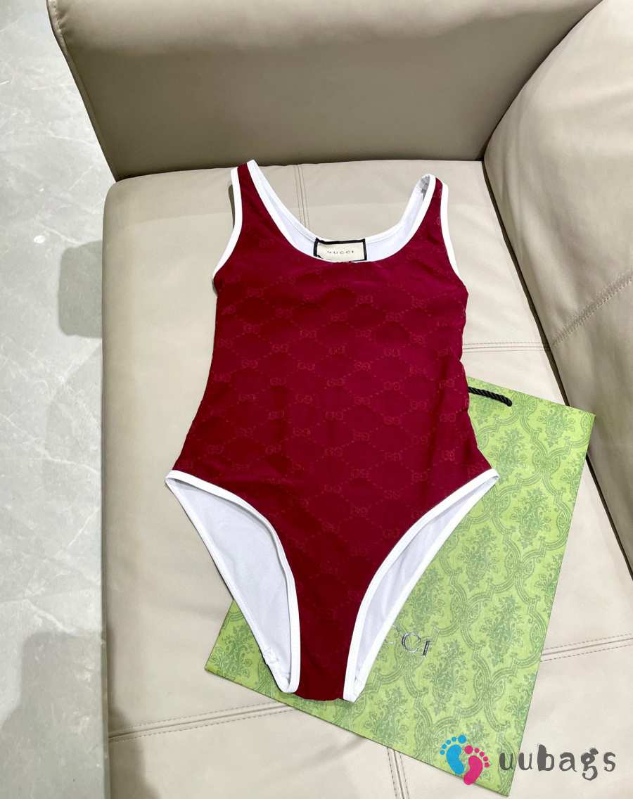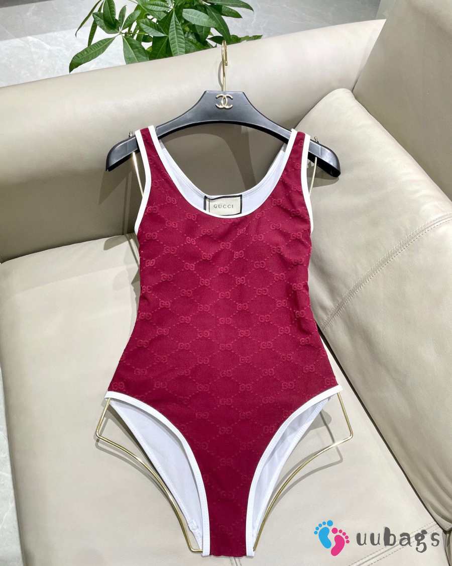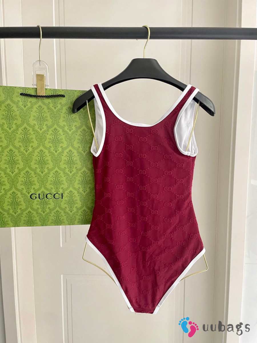 Uubags Gucci Piped terry-jacquard swimsuit in red