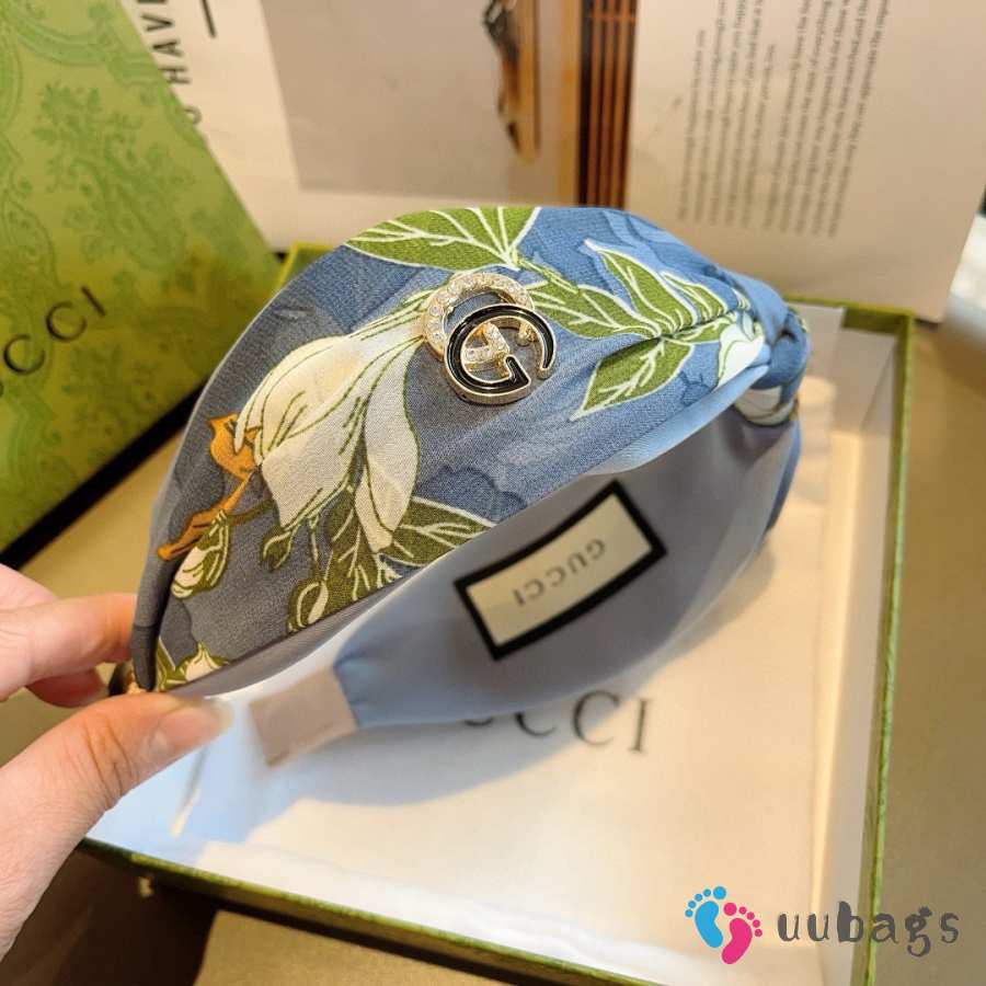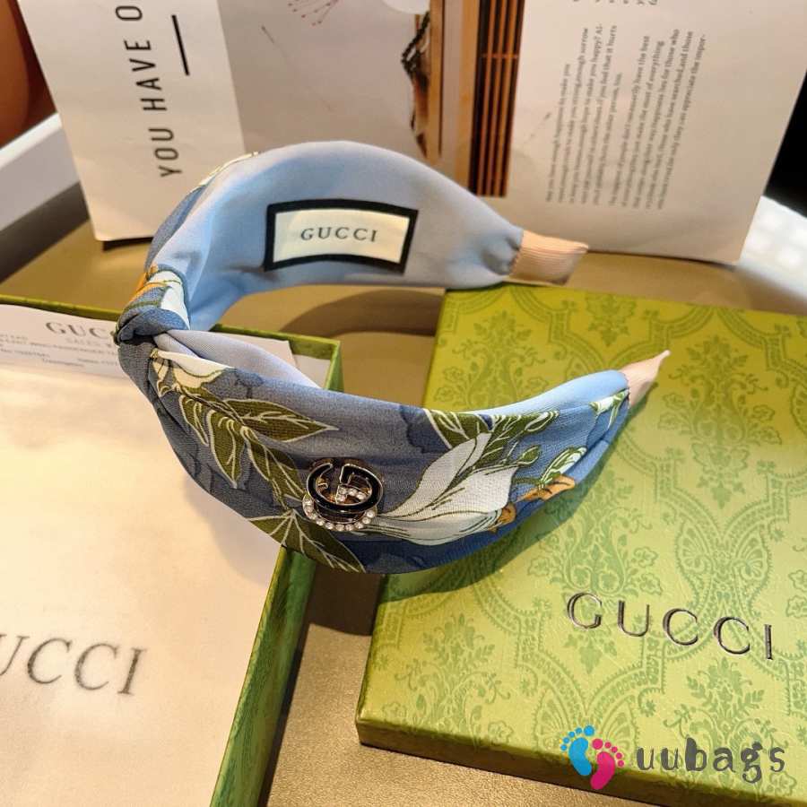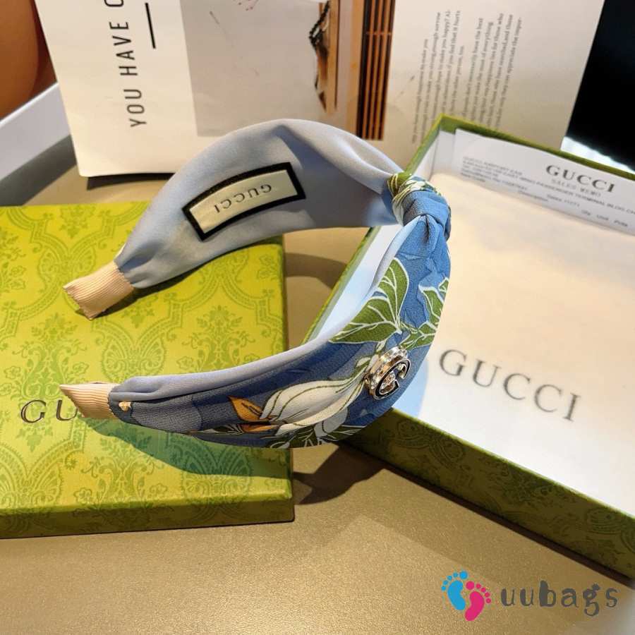 Uubags Gucci silk headband with GG logo in blue