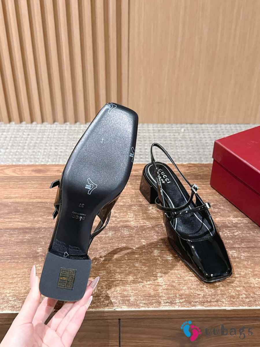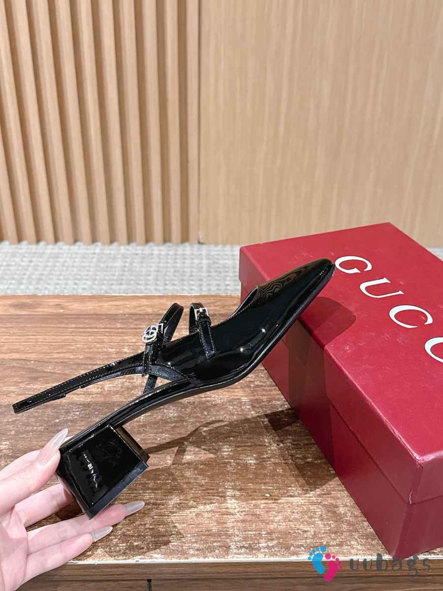Uubags Gucci slingback pump in black patent leather 4.5cm