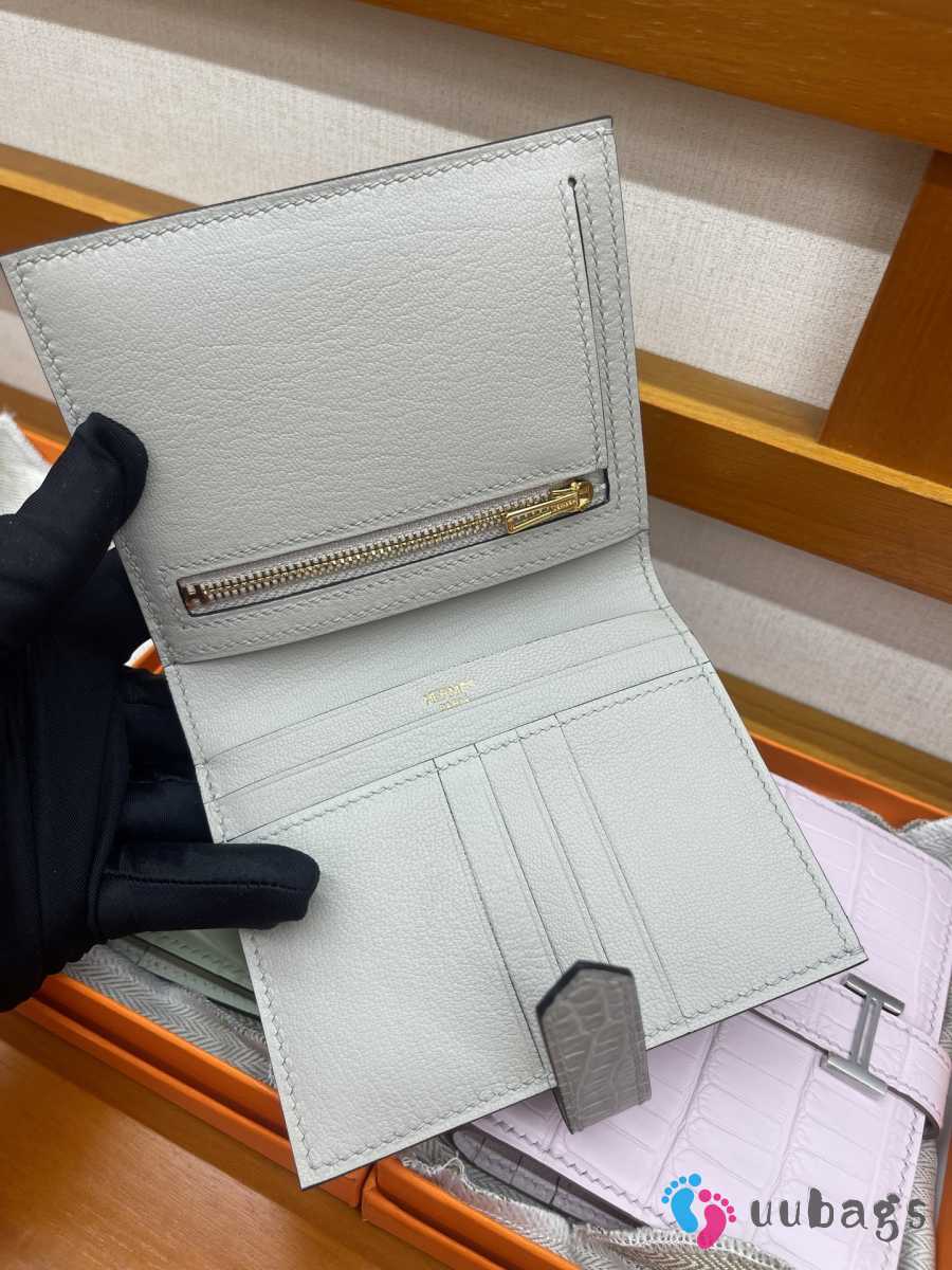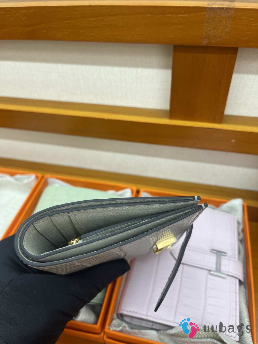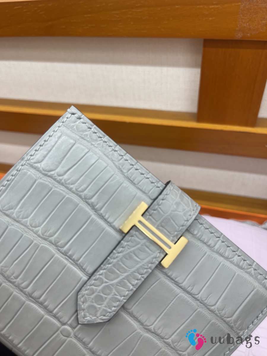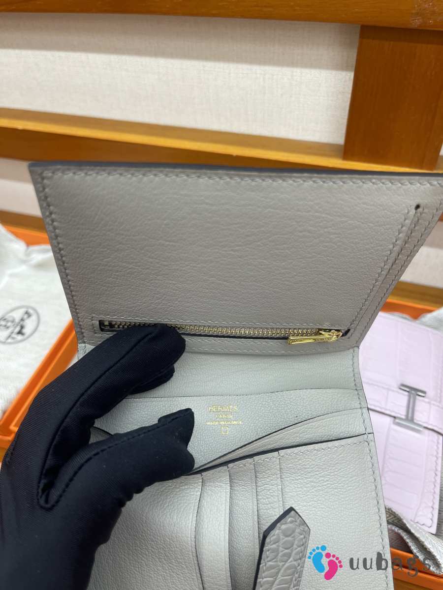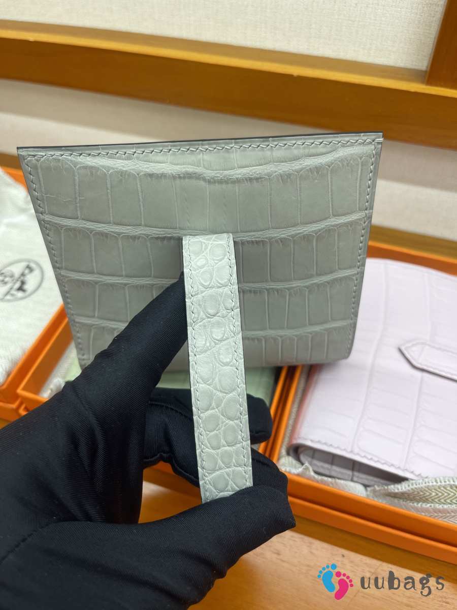 Uubags Hermes Bearn Compact wallet in gris ciment alligator crocodile skin with gold hardware 12x9.5x0.4cm