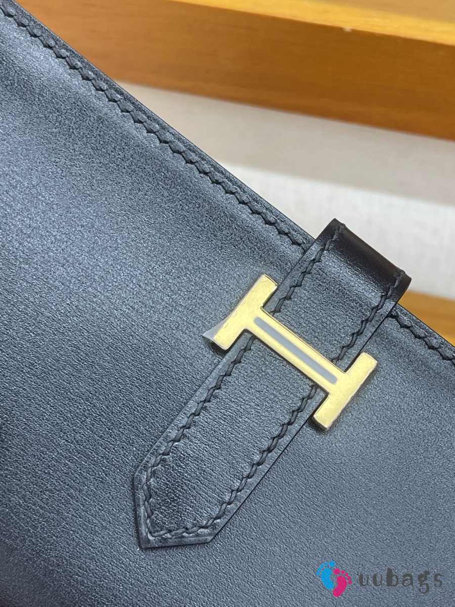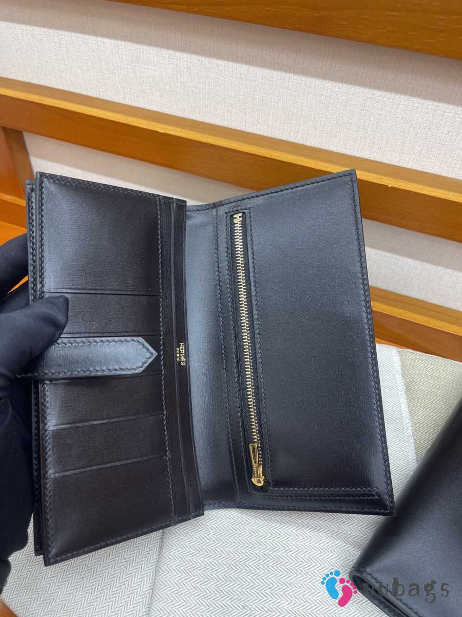 Uubags Hermes Bearn monochrome wallet in black with gold buckle 17.5x9x0.5cm