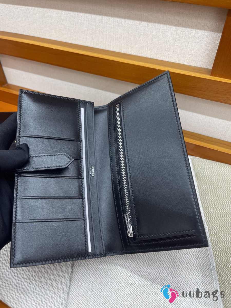 Uubags Hermes Bearn monochrome wallet in black with silver buckle 17.5x9x0.5cm