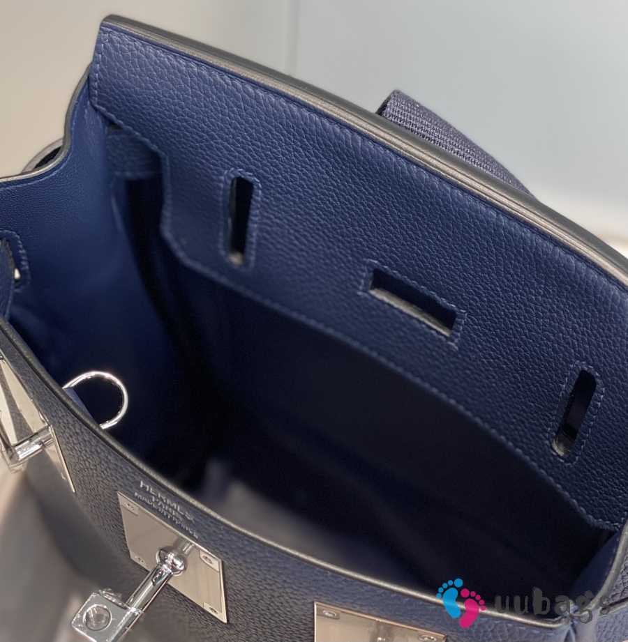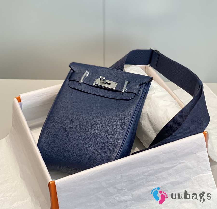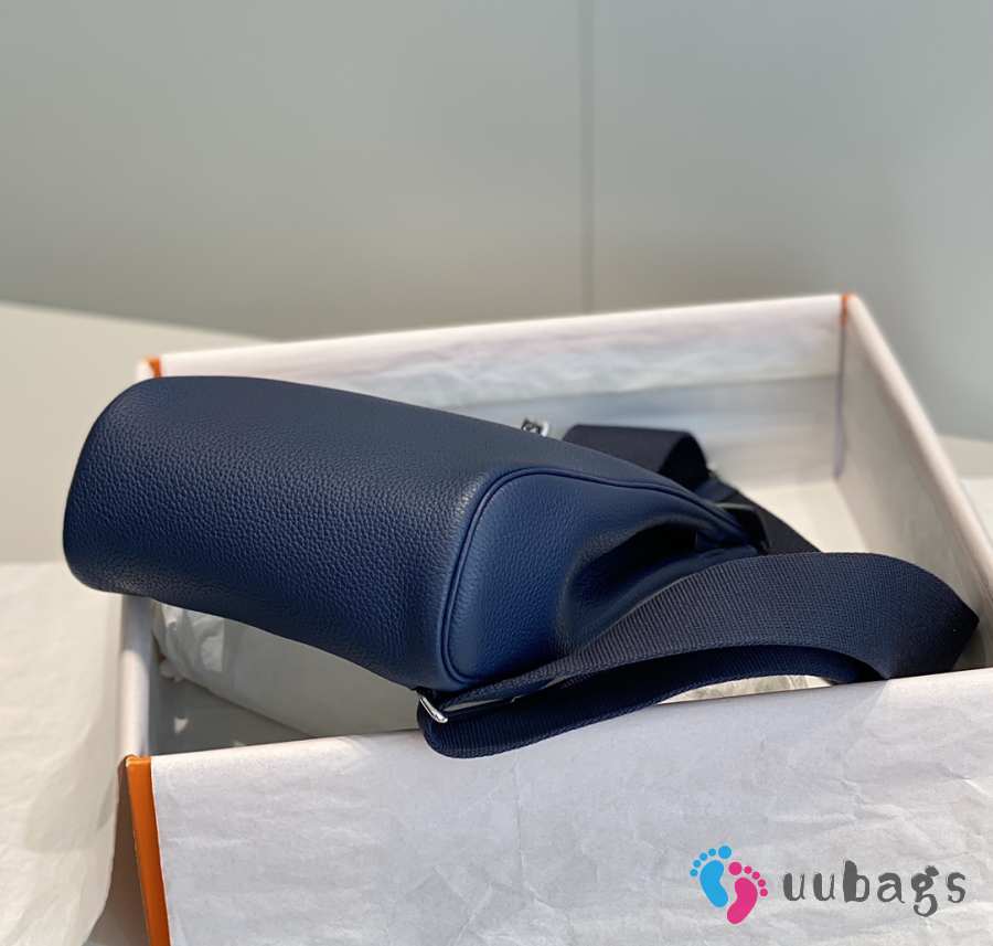 Uubags Hermes Hac a Dos PM backpack in navy blue with silver buckle 18x28x8cm