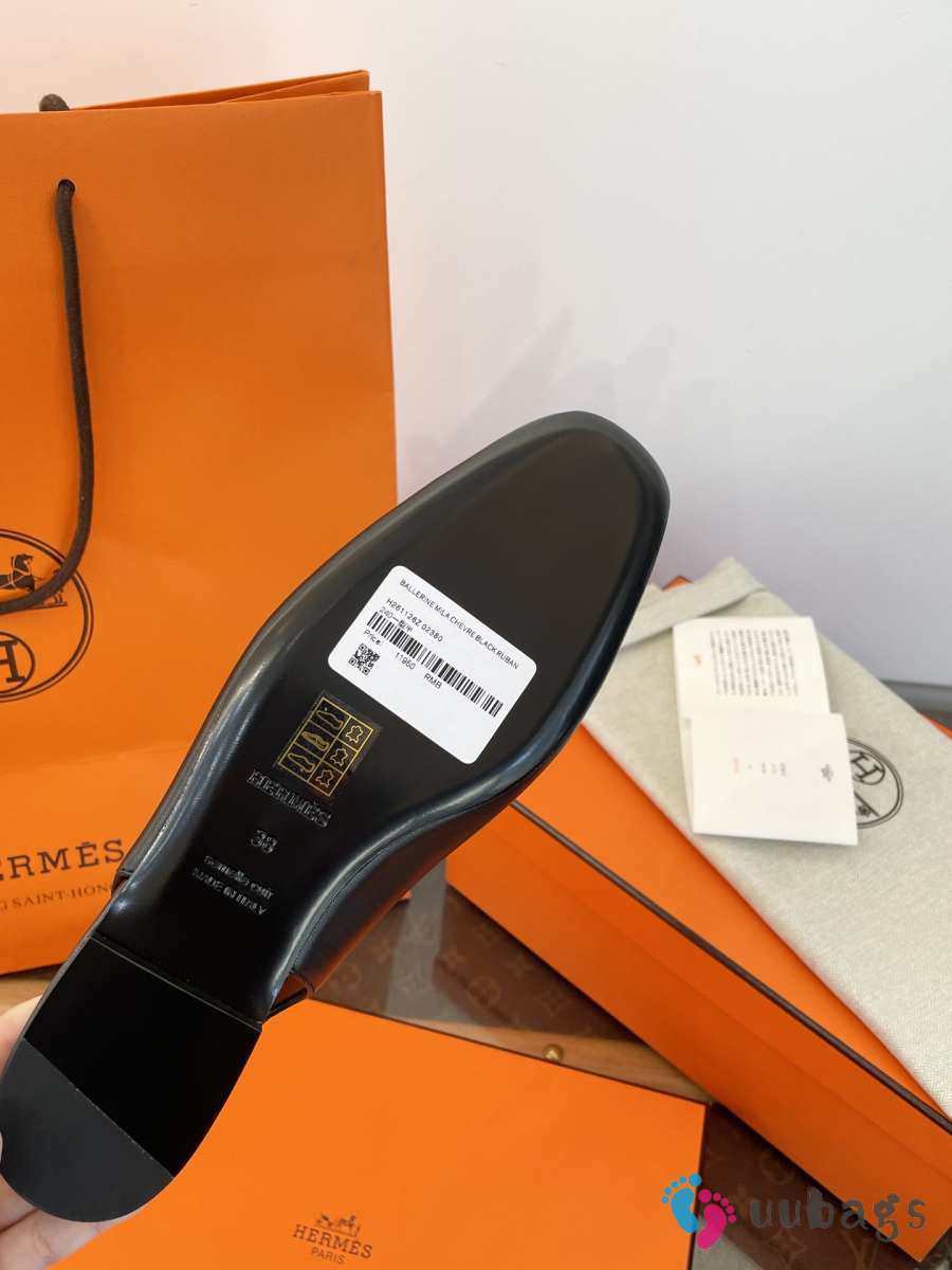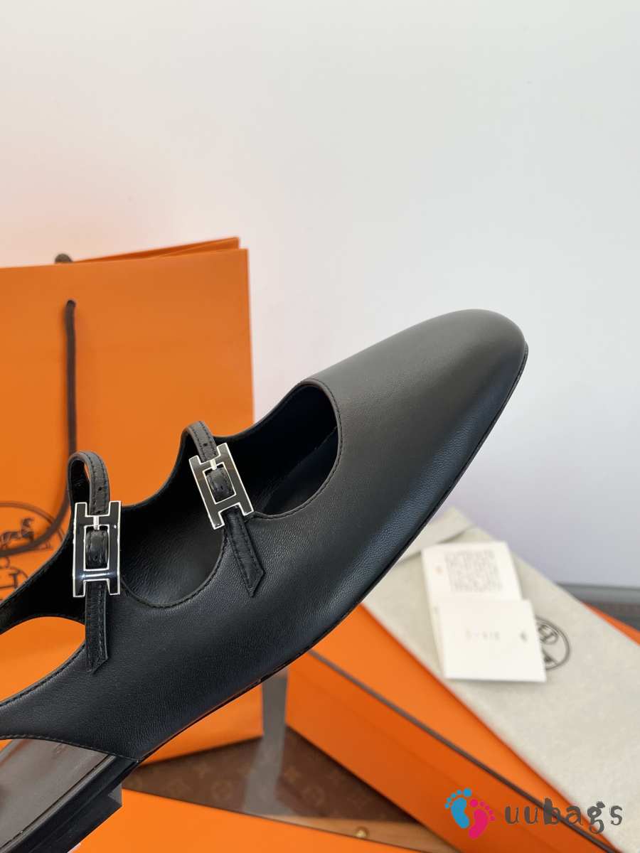 Uubags Hermes Mila slingback in black nomade goatskin featuring a Hapi buckle