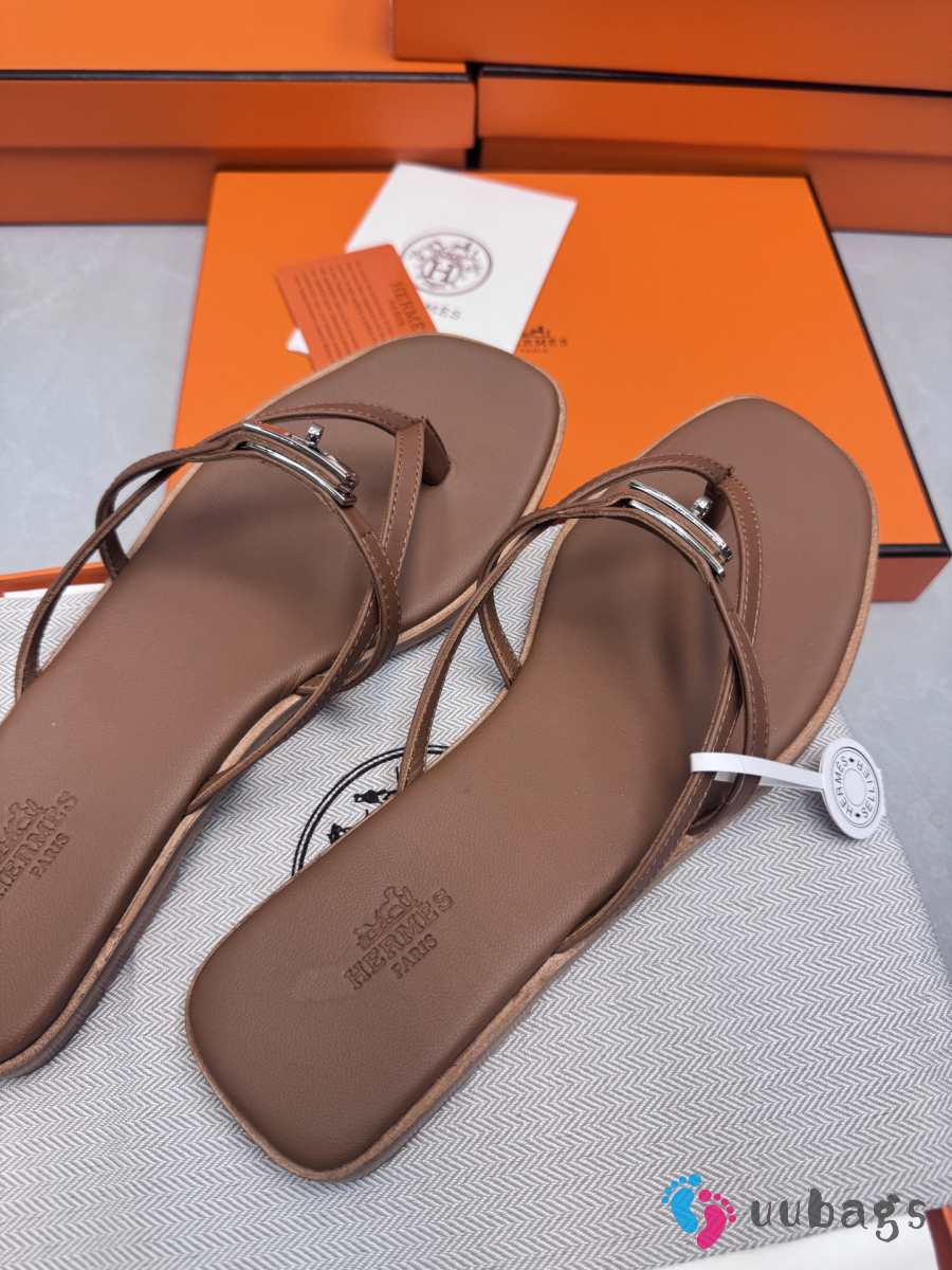 Hermes slippers brown 1