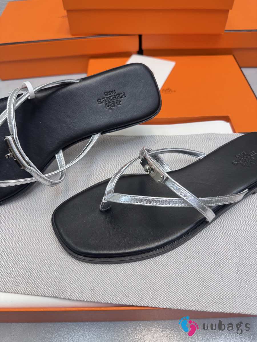 Uubags Hermes Miss sandal in silver-grey