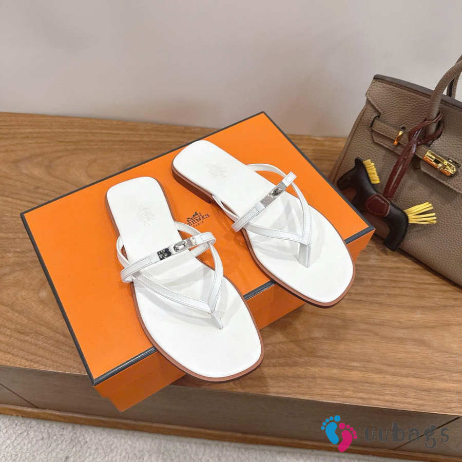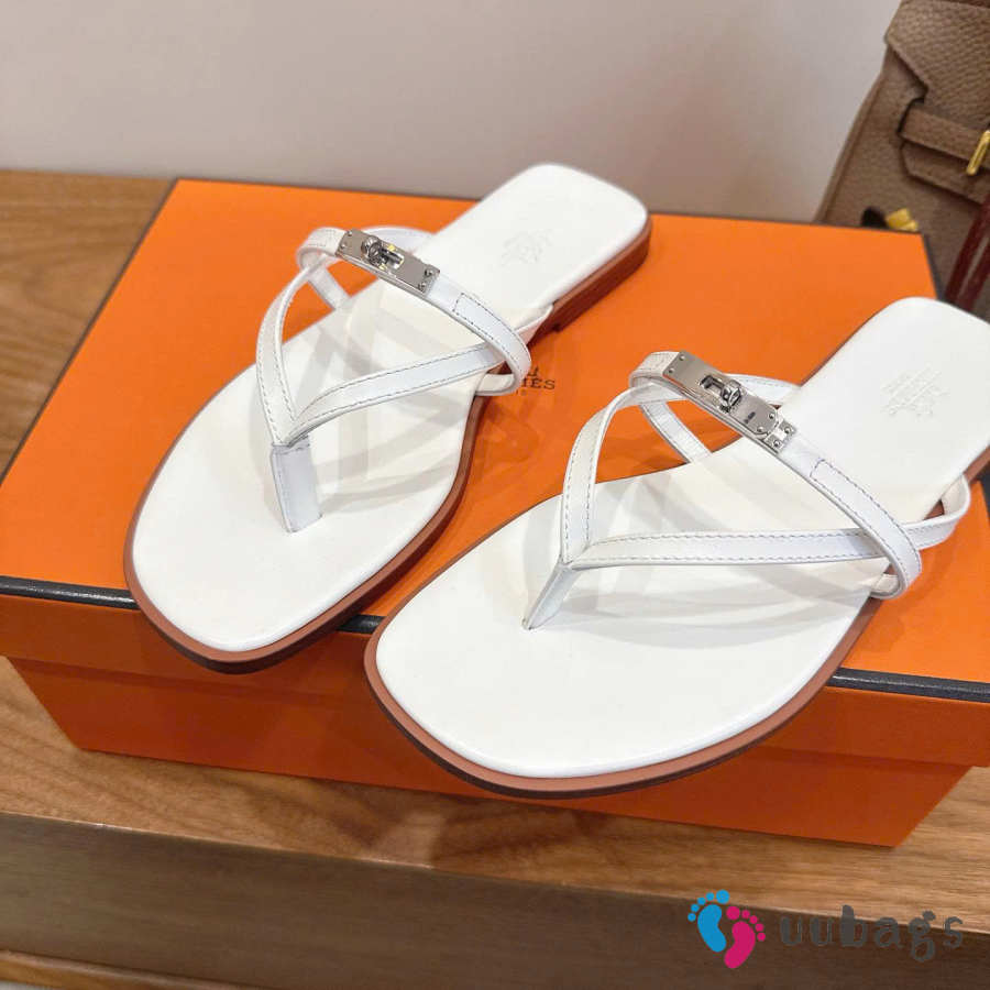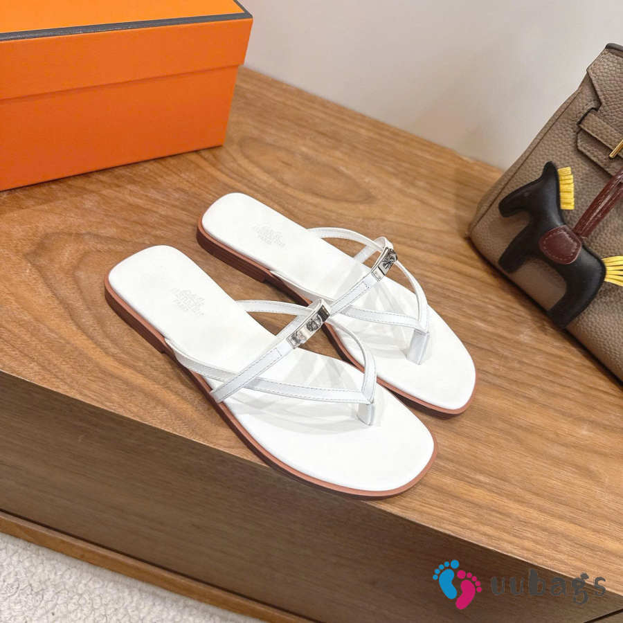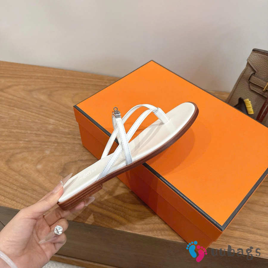 Uubags Hermes Miss sandal in white with natural leather sole