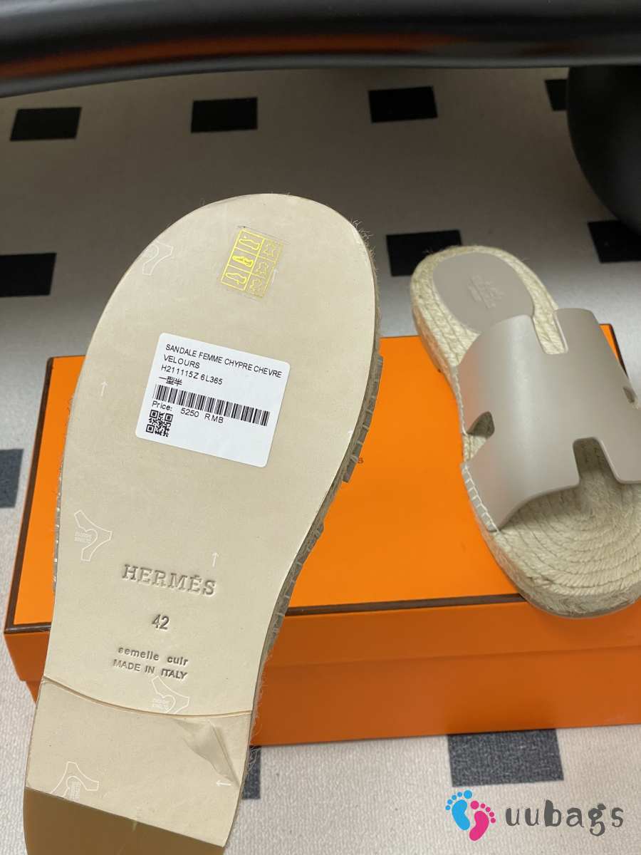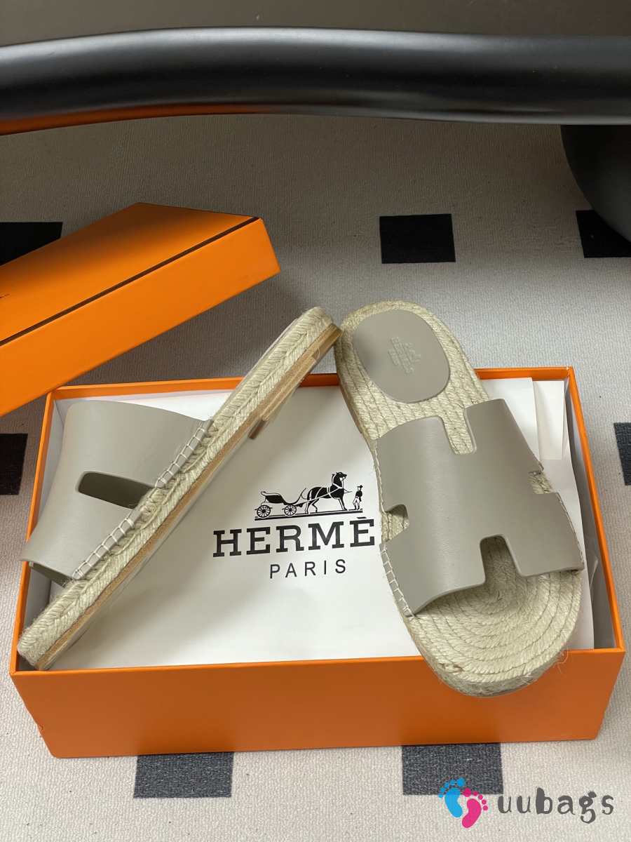 Uubags Hermes Old espadrille light grey natural leather sole with natural rubber insert