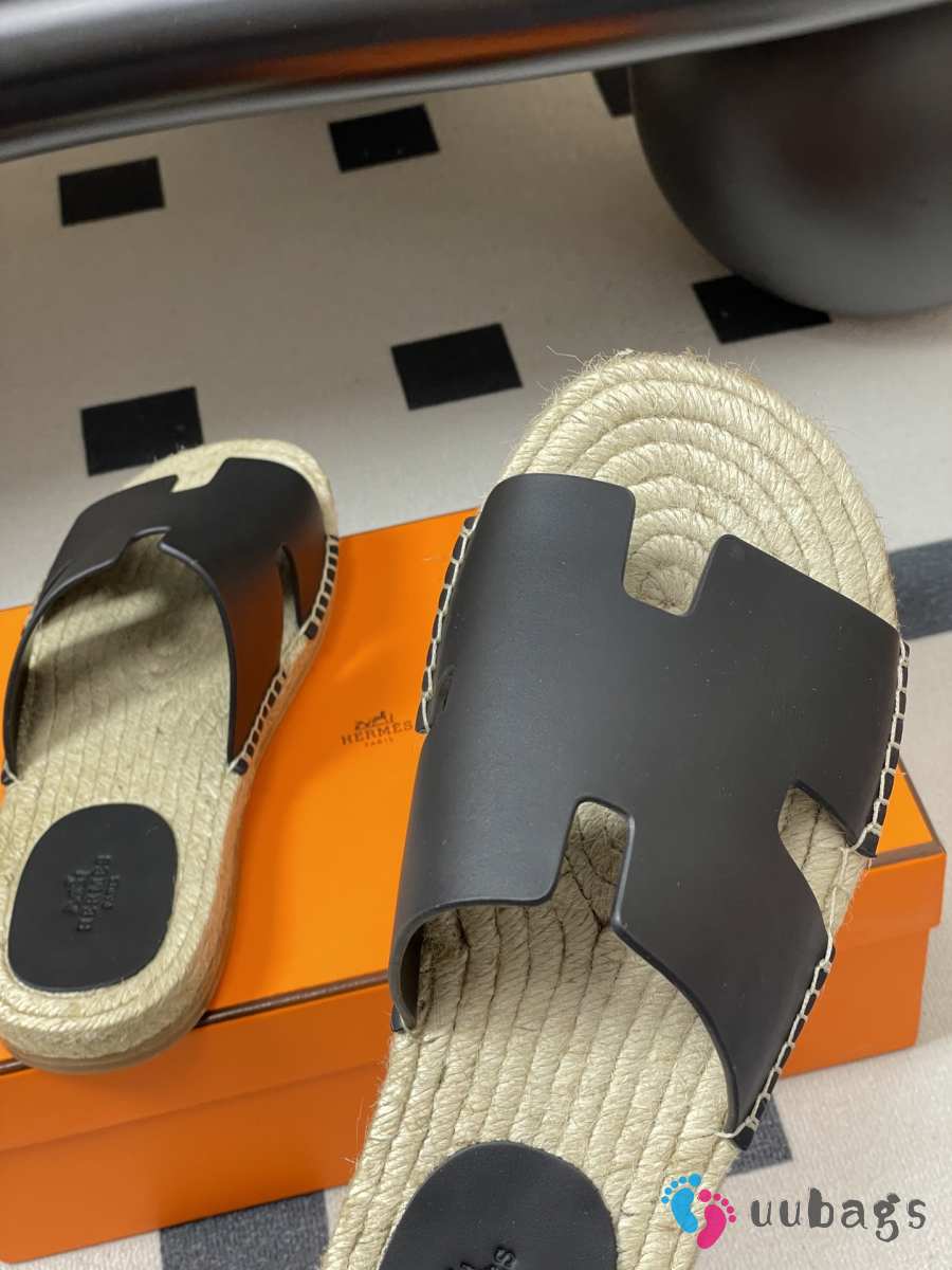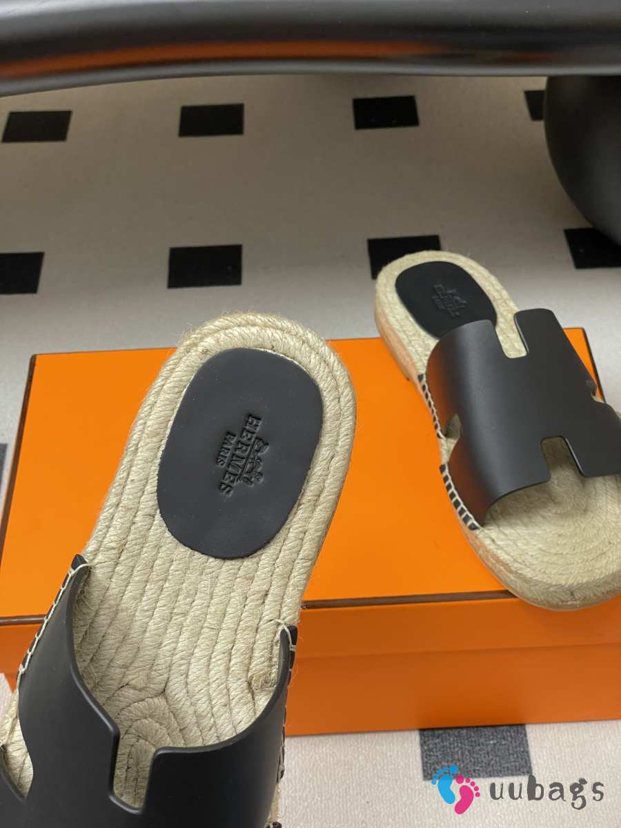 Uubags Hermes Old espadrille noir natural leather sole with natural rubber insert