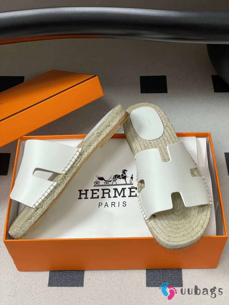 Uubags Hermes Old espadrille white natural leather sole with natural rubber insert