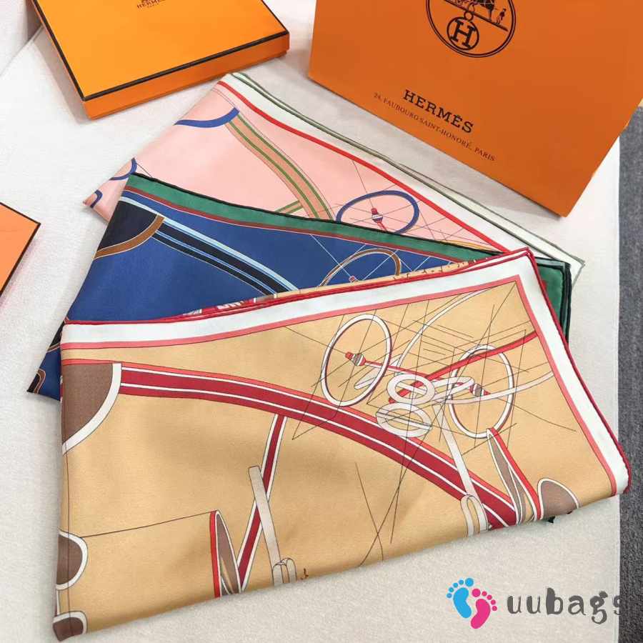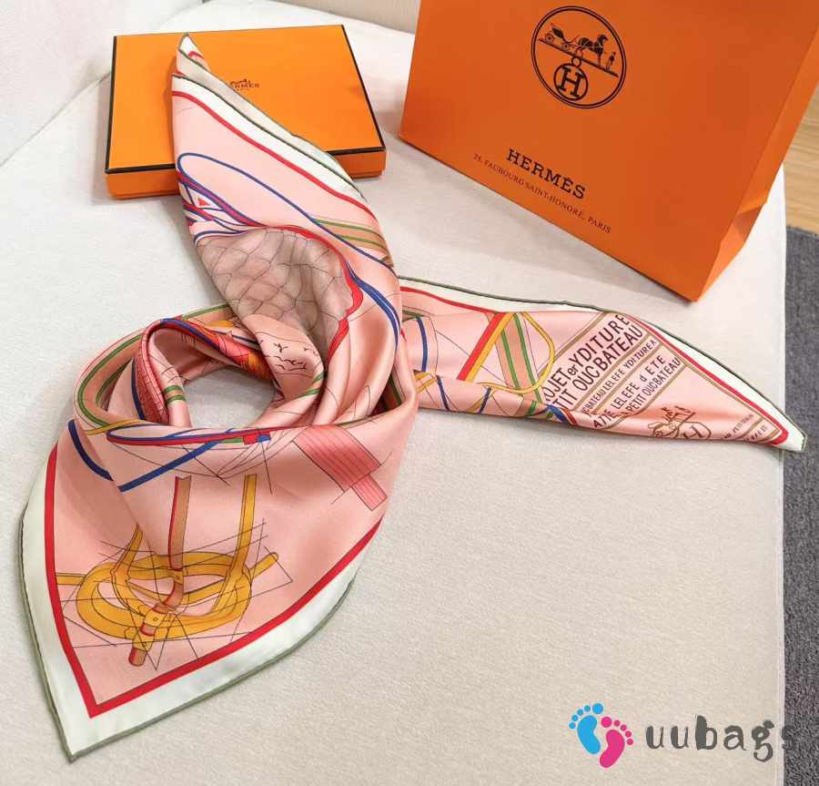 Uubags Hermes Petit Duc double face scarf 90 powder pink/ yellow/ multicoloured 88.5x88.5cm