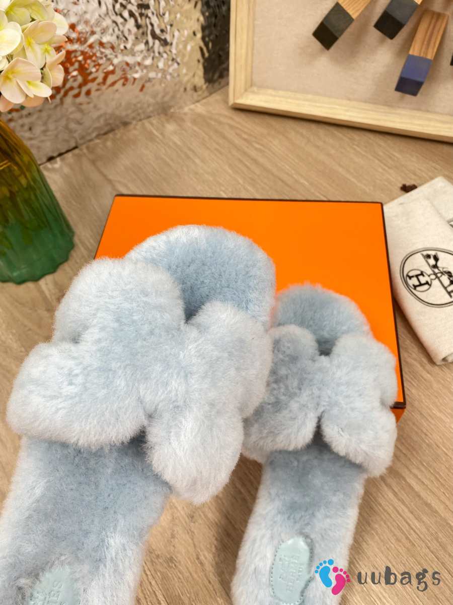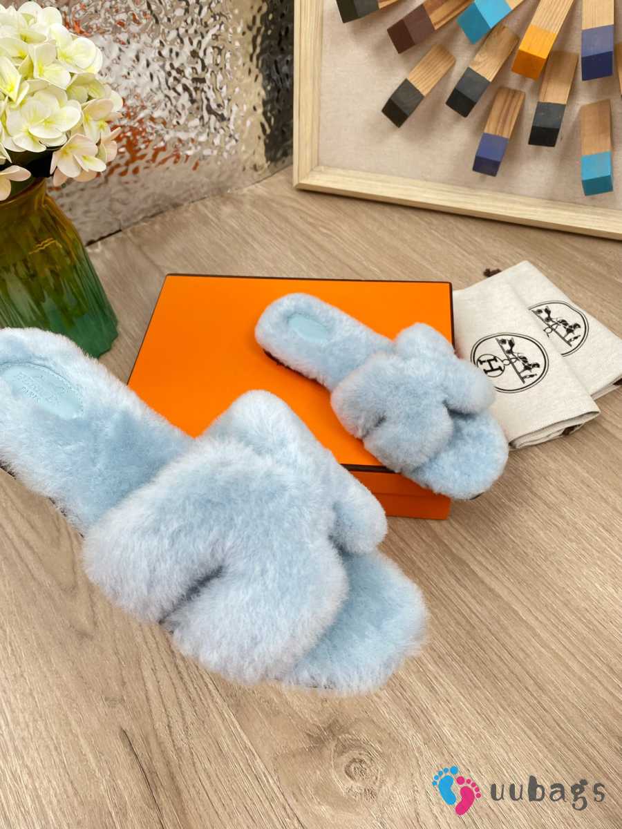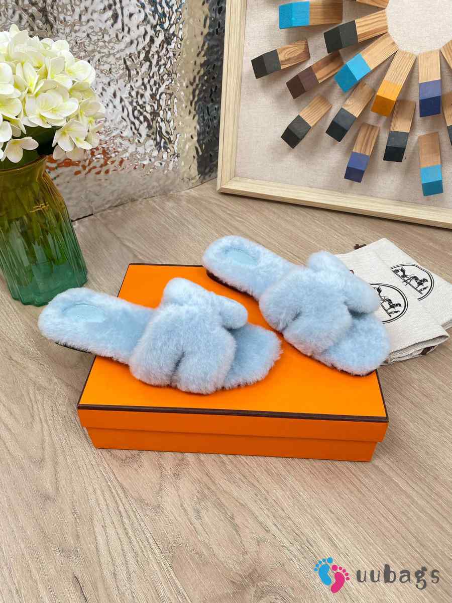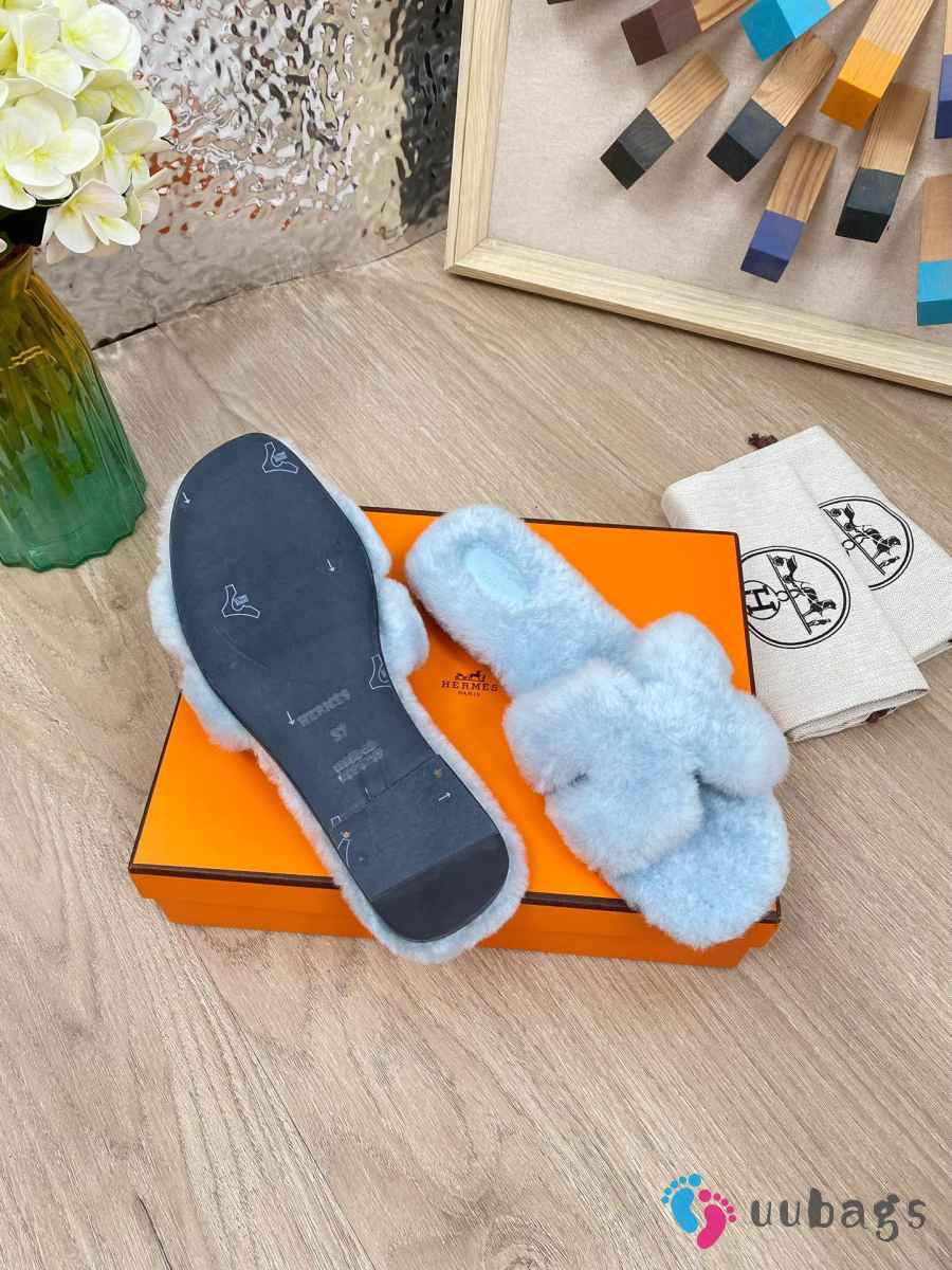 Uubags Hermes Oran Ostrich Leather Slippers 06