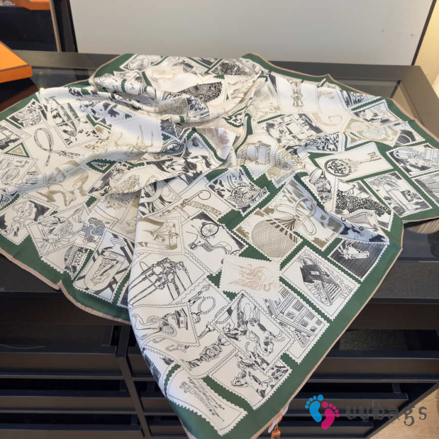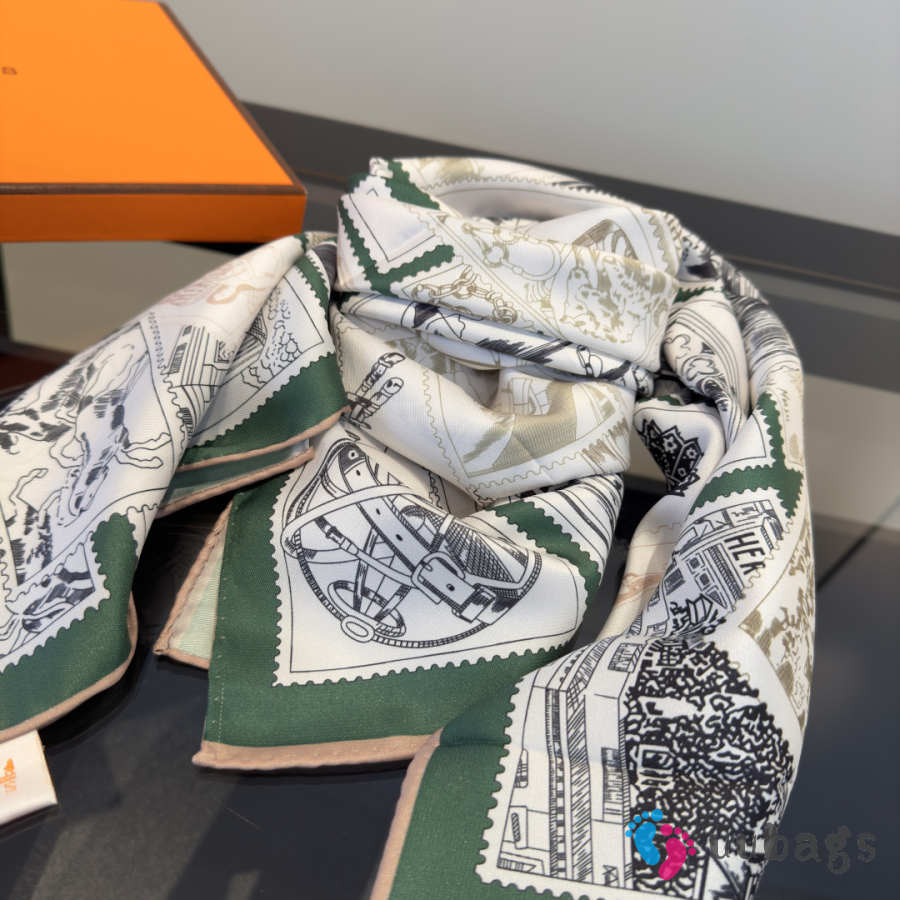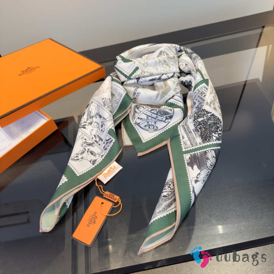 Uubags Hermes scarf in silk twill with hand-rolled edges green 88.5x88.5cm